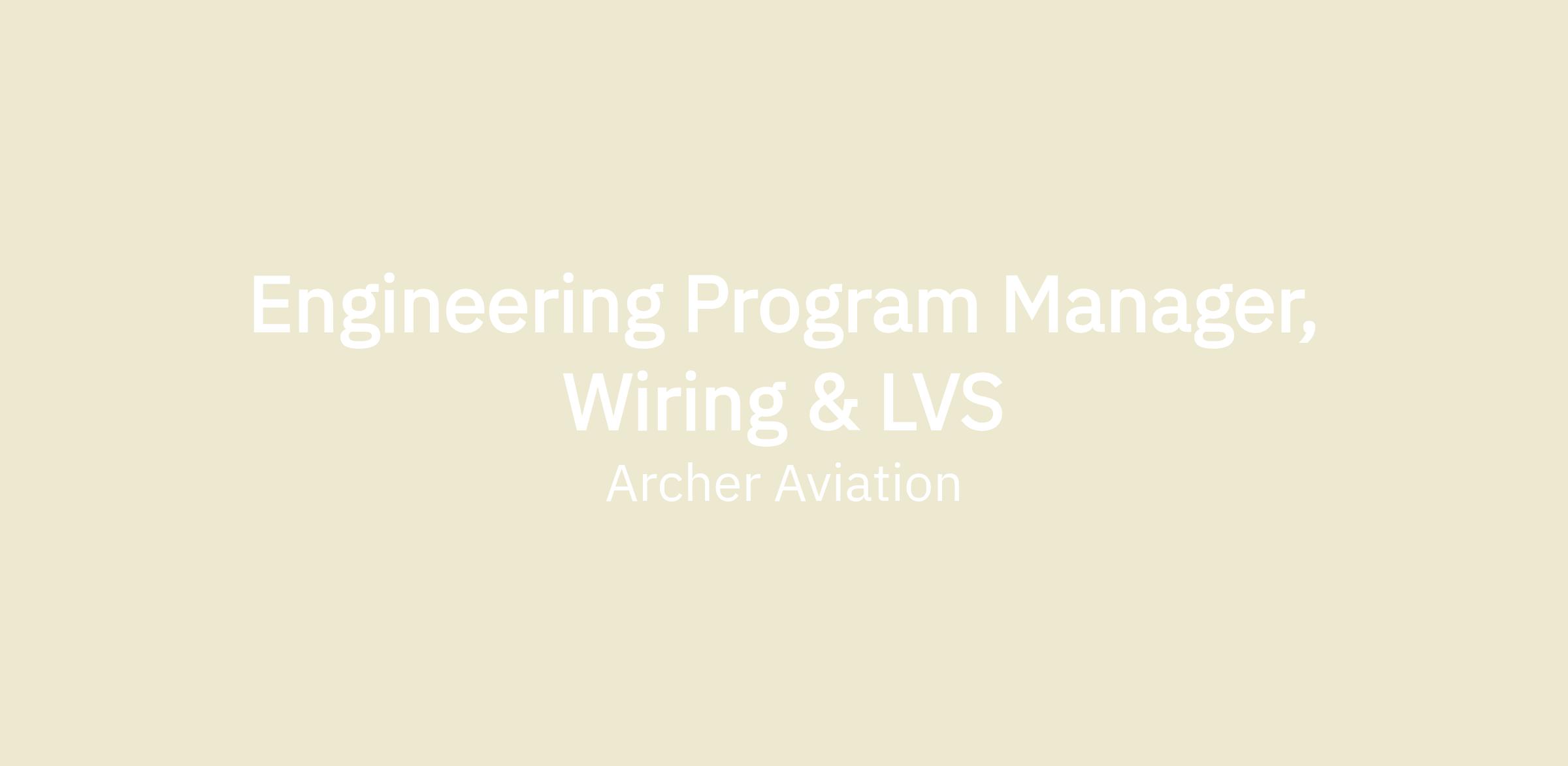 We are seeking a Program Manager to drive the planning, execution, and delivery of technical work packages for Wiring & Low Voltage Systems (LVS). This role will be responsible for managing the program schedule, budget, and resources for LVS and wiring harness architecture development, design, and integration. The position requires a foundational understanding of electrical systems and wiring harness design principles, coupled with proven program management experience on complex product development programs in an aerospace environment.