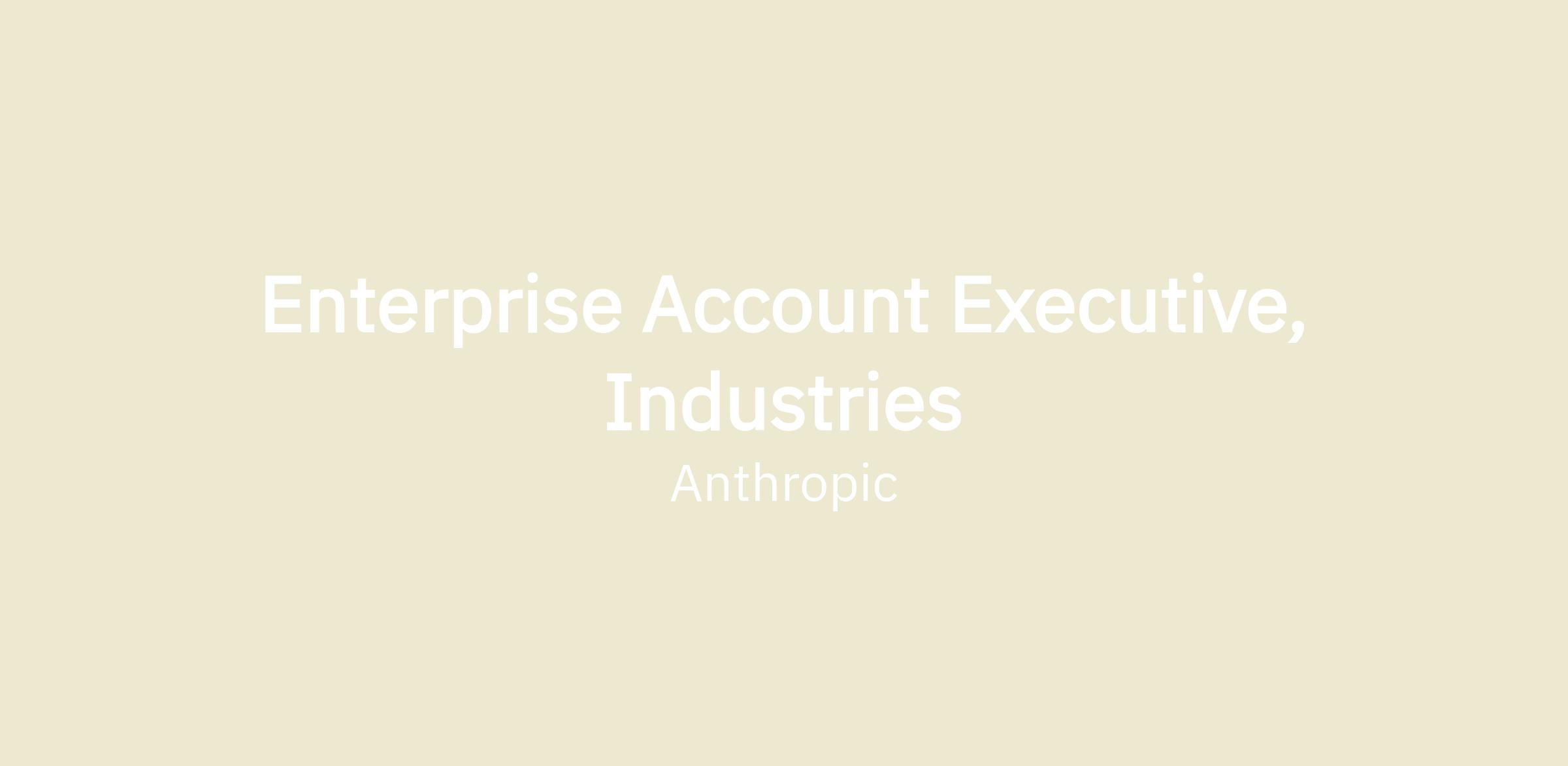 As an Enterprise Account Executive at Anthropic's Industries team, you'll drive the adoption of safe, frontier AI by securing strategic deals with top enterprises, unlocking new value streams throughout their business. You'll leverage your consultative sales expertise and technical acumen to propel revenue growth while becoming a trusted partner to customers, helping them embed and deploy AI while uncovering its full range of capabilities. In collaboration with GTM, Product, Engineering, and cross-functional teams, you'll continuously refine our value proposition, sales methodology, and market positioning to ensure differentiated value across the landscape.