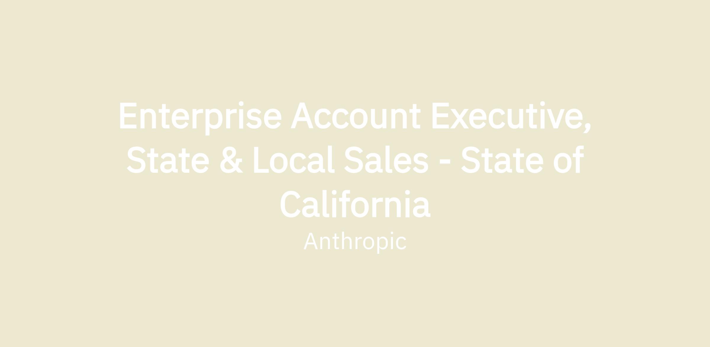 As a State and Local Government Account Executive at Anthropic, you'll drive the adoption of safe, frontier AI focused on California state and other state and local agencies. You'll leverage your deep understanding of state and local government operations and consultative sales expertise to propel revenue growth while becoming a trusted partner to customers, helping them embed and deploy AI while uncovering its full range of capabilities. In collaboration with GTM, product, and marketing teams, you'll help refine our approach to the state and local government market while maintaining the highest standards of security and compliance.