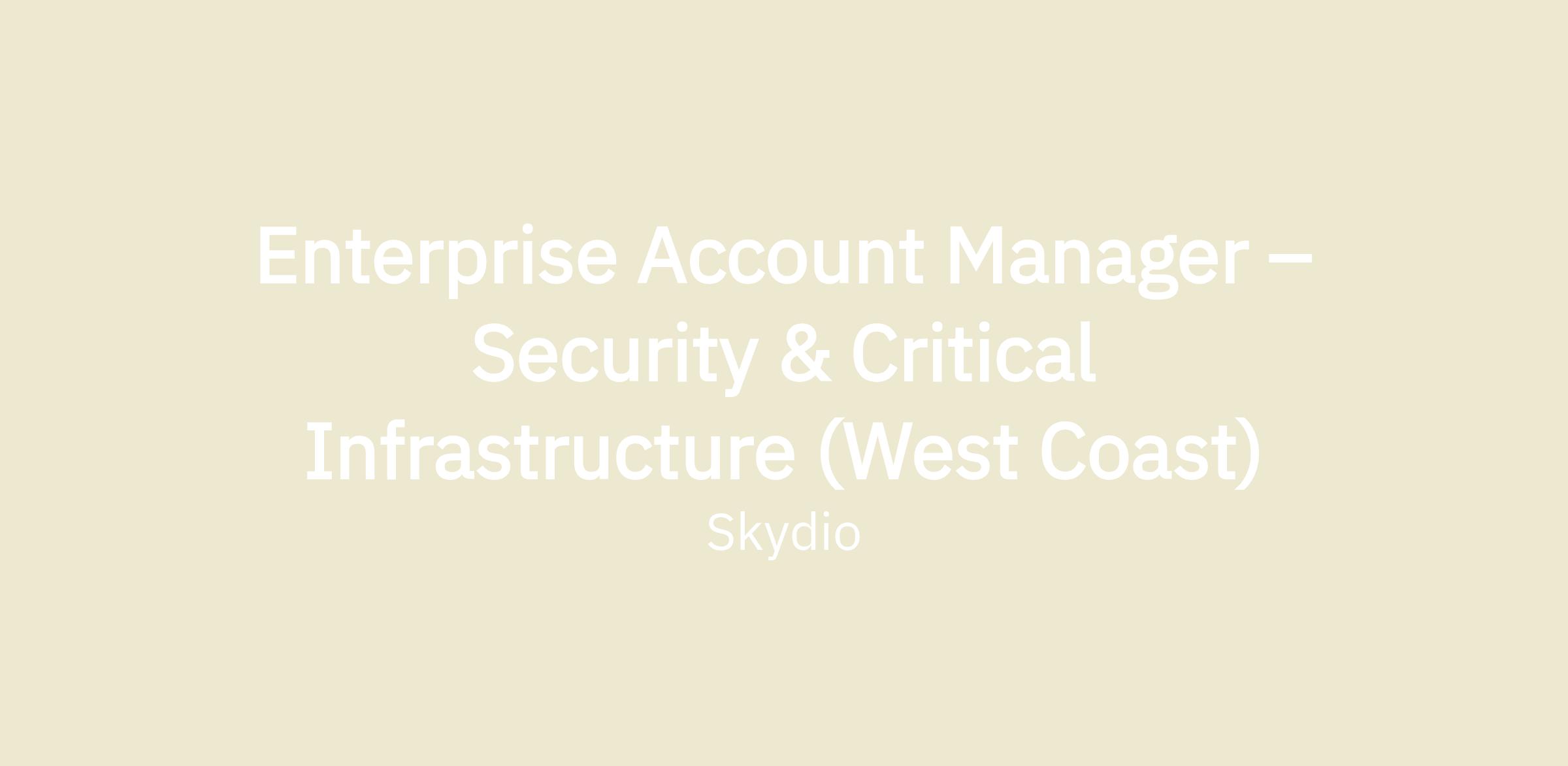 As a West Coast Enterprise Account Manager (EAM) at Skydio, you will be responsible for driving strategic growth within large enterprise accounts where security, resilience, and asset integrity are business-critical. You will lead complex, multi-stakeholder sales cycles, engaging senior security, operations, and infrastructure leaders to position Skydio as a long-term, mission-critical partner.