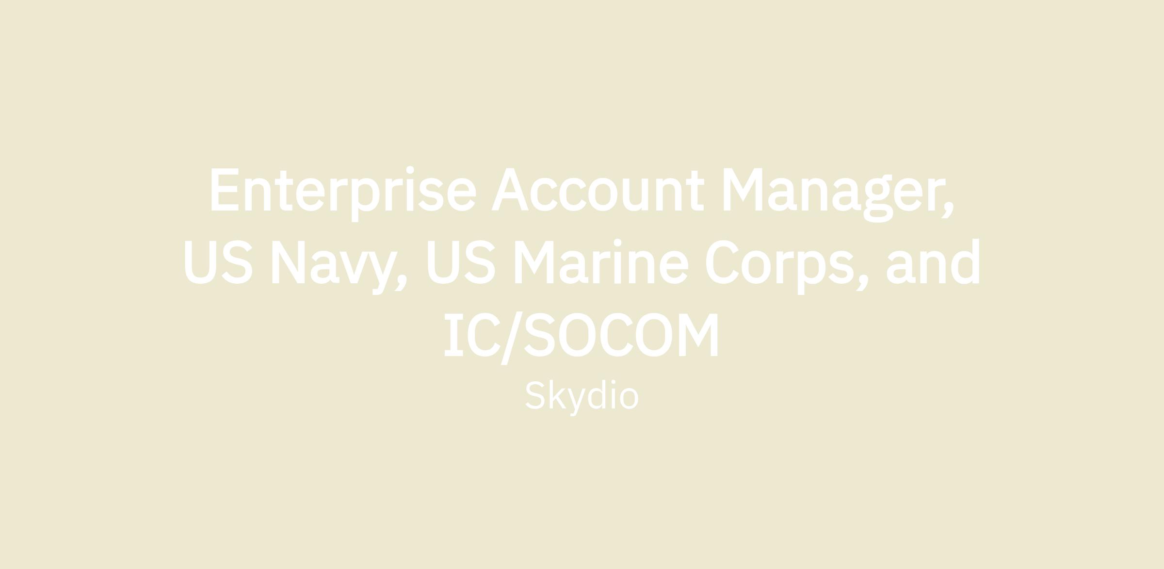 As an Enterprise Account Manager (EAM) supporting the US Navy, US Marine Corps, and IC/SOCOM accounts at Skydio, you will drive strategic growth and mission adoption of Skydio solutions across maritime, expeditionary, and special operations communities. You will lead account strategy, identify and mature opportunities, and build trusted relationships across operational commands, program offices, and acquisition organizations.