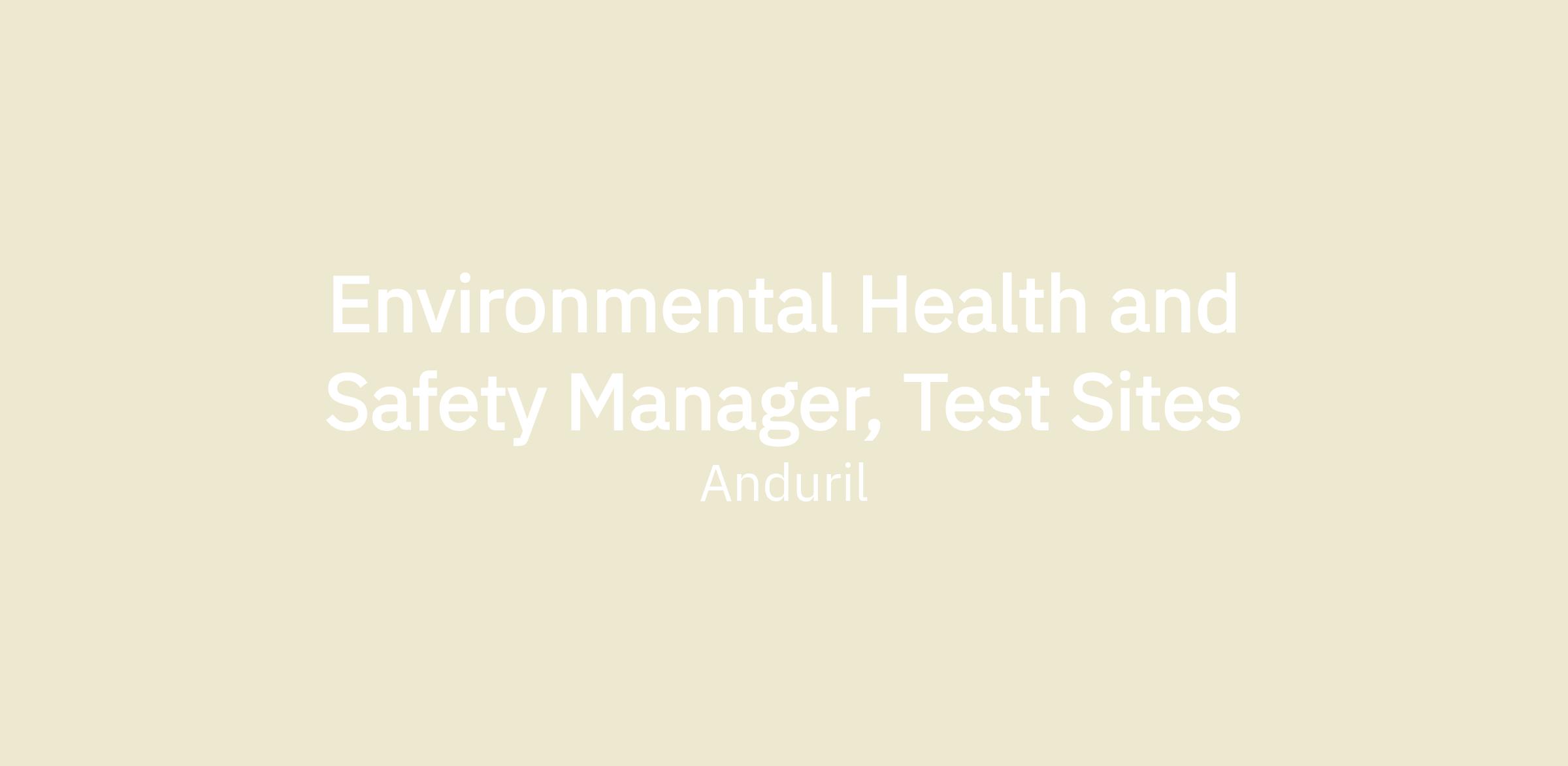 Anduril is looking for an Environmental Health & Safety Manager (Test Sites) to join our rapidly growing team. As Environmental Health & Safety Manager, you’ll be responsible for Anduril’s safety and environmental policies, processes, and procedures primarily at our test sites and secondarily at our HQ supporting R&D. You’ll understand all federal, state, and local regulations and industry best practices, and work to improve Anduril’s processes.