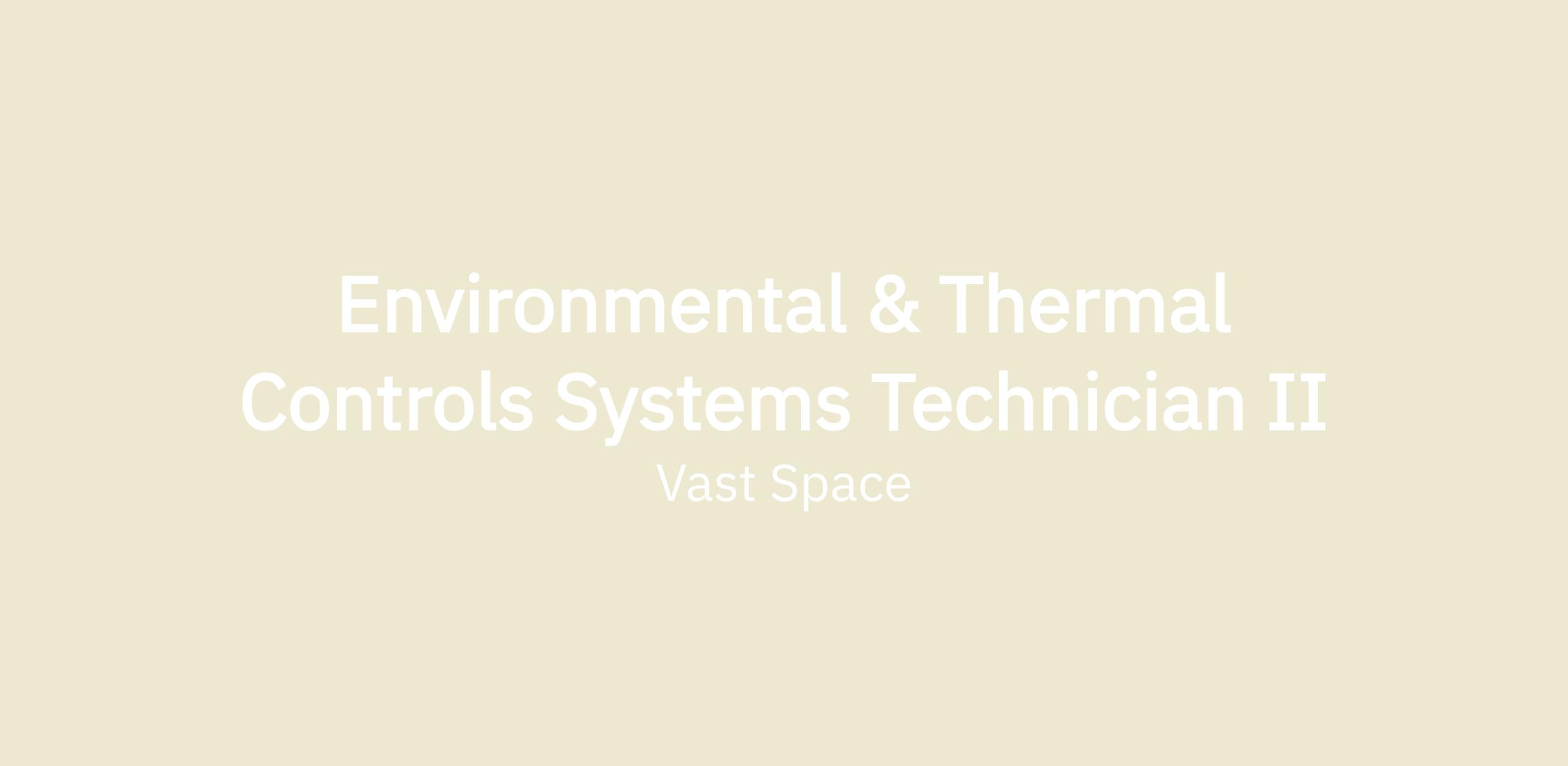 Vast is looking for a(n) TCS Technician, reporting to the Manager, Thermal Test Engineering, to support the development of the systems that will be required for the design and build of artificial-gravity human-rated space stations.