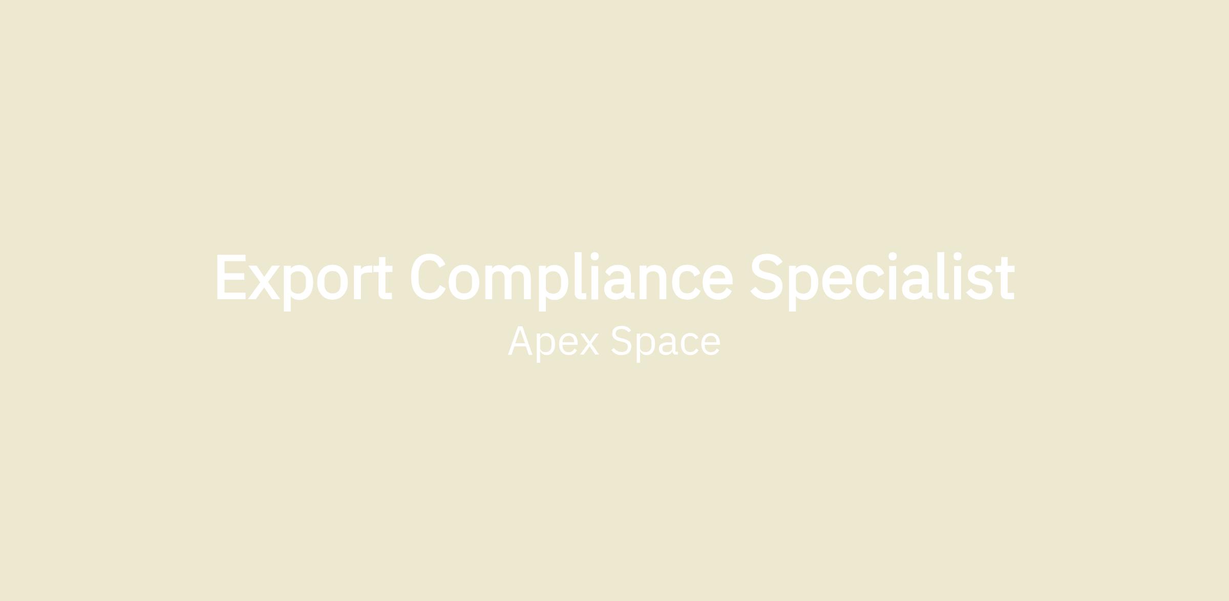 Apex is seeking a dynamic, organized, and driven Export Compliance Specialist to join our expanding team. As a company at the forefront of space exploration and satellite technology, Apex is looking for an individual capable of assisting with the company’s complex export compliance program. As a subject matter expert, the Global Trade Compliance Specialist will ensure that all of Apex’s commodities, data, and technology are properly classified and marked accordingly. This role also is responsible for assisting in the preparation of necessary export licenses and agreements and supporting the Export Compliance Manager with special projects as necessary. This position sits within the Legal Department, and works closely with the Mission Management, Product, Business Development, and Supply Chain teams.