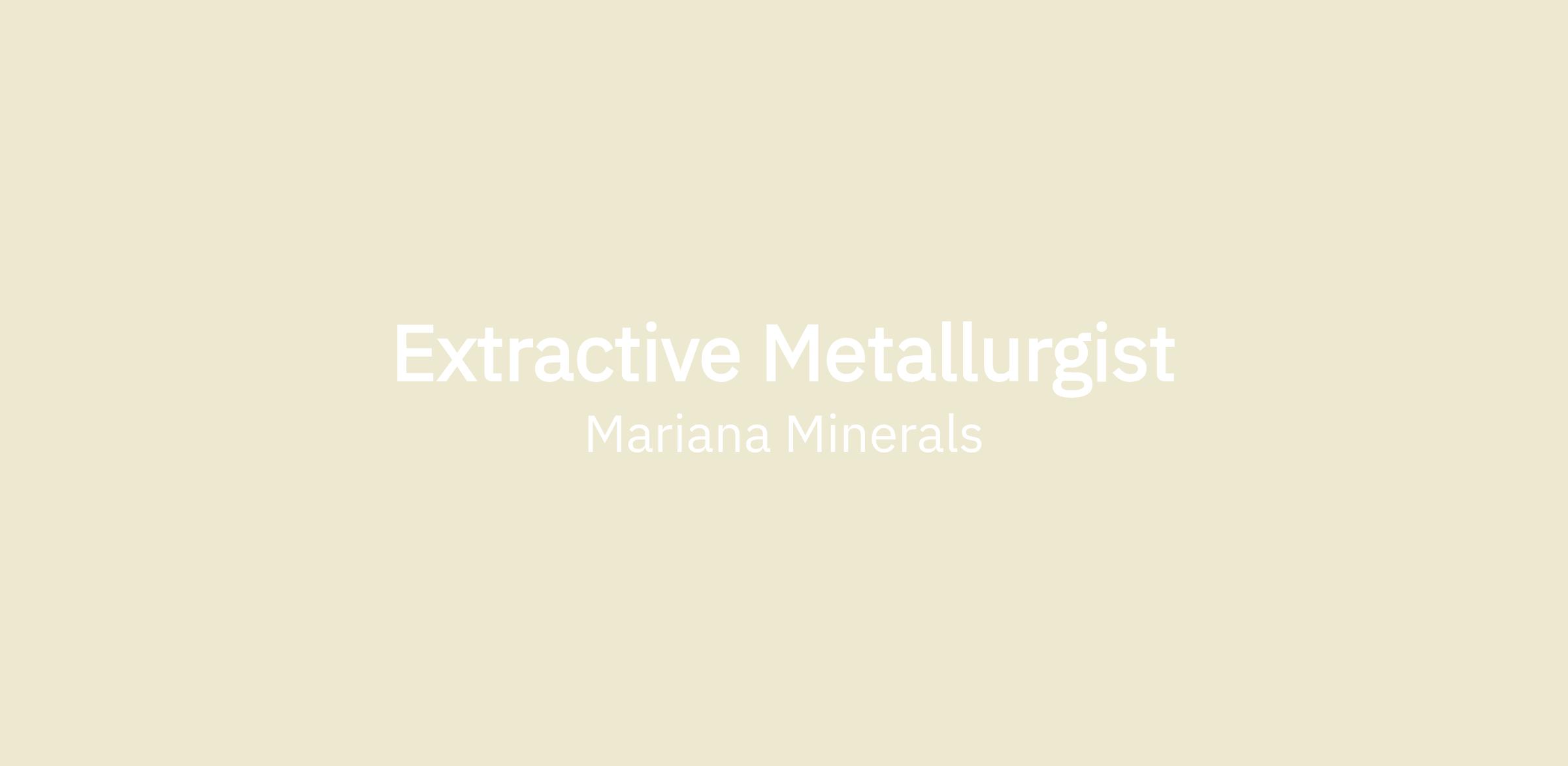We are seeking an Extractive Metallurgist to join our growing technical team in San Francisco. This role will play a critical part in the development, optimization, and scale-up of mineral processing systems for Mariana’s global operations. The ideal candidate brings strong process engineering and metallurgical expertise, ideally in zinc or copper, and thrives in fast-paced, startup environments where independence, creativity, and problem solving are essential.