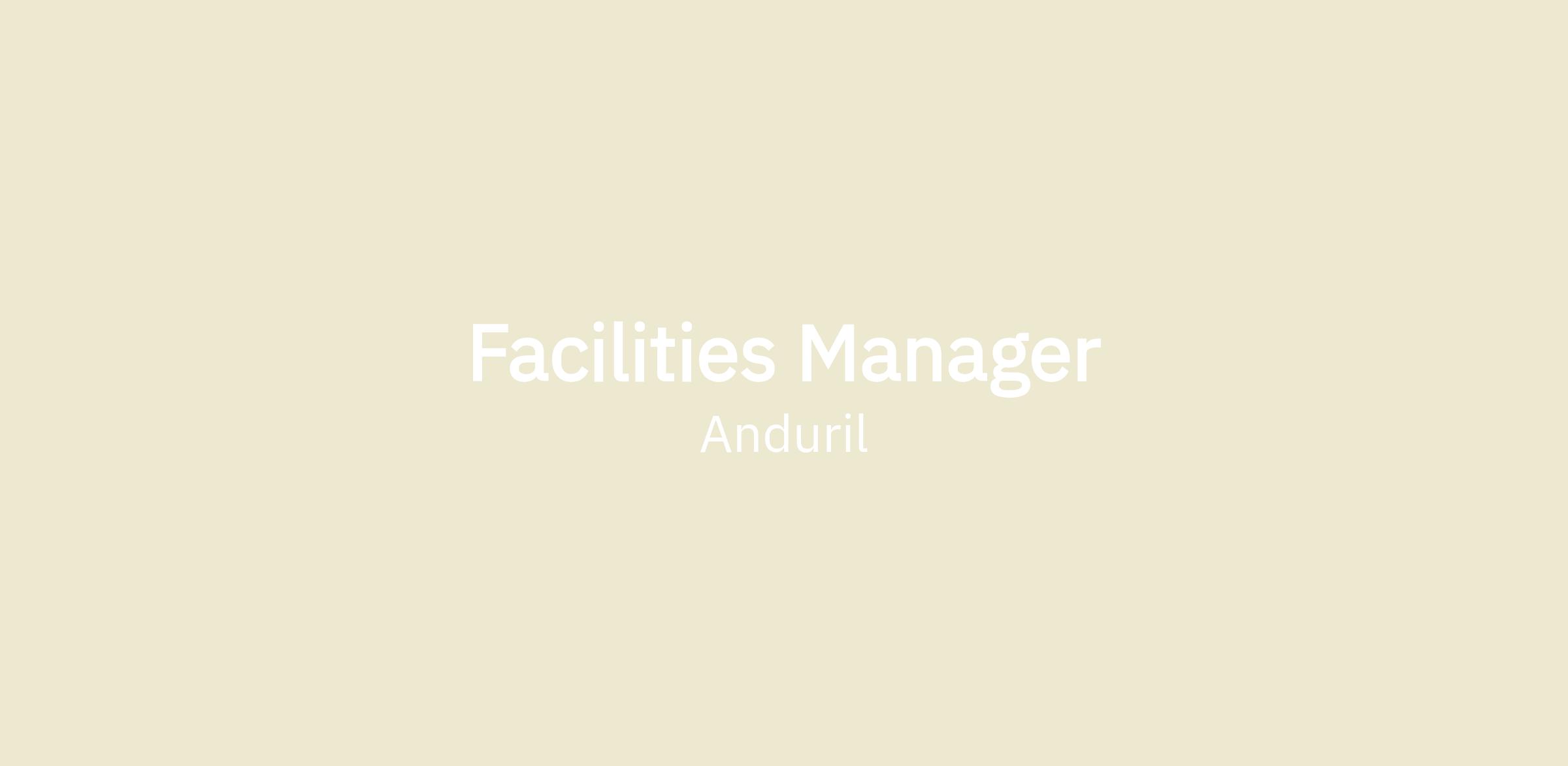 Anduril’s Facilities team is seeking a Facilities Manager to join our team. The Facilities Operations team is responsible for maintaining and optimizing the facility to ensure operational continuity, safety, and efficiency and reports through the regional manager of Facilities. Duties include running routine safety inspections, partnering with contractors, planning maintenance work, and maintaining records.