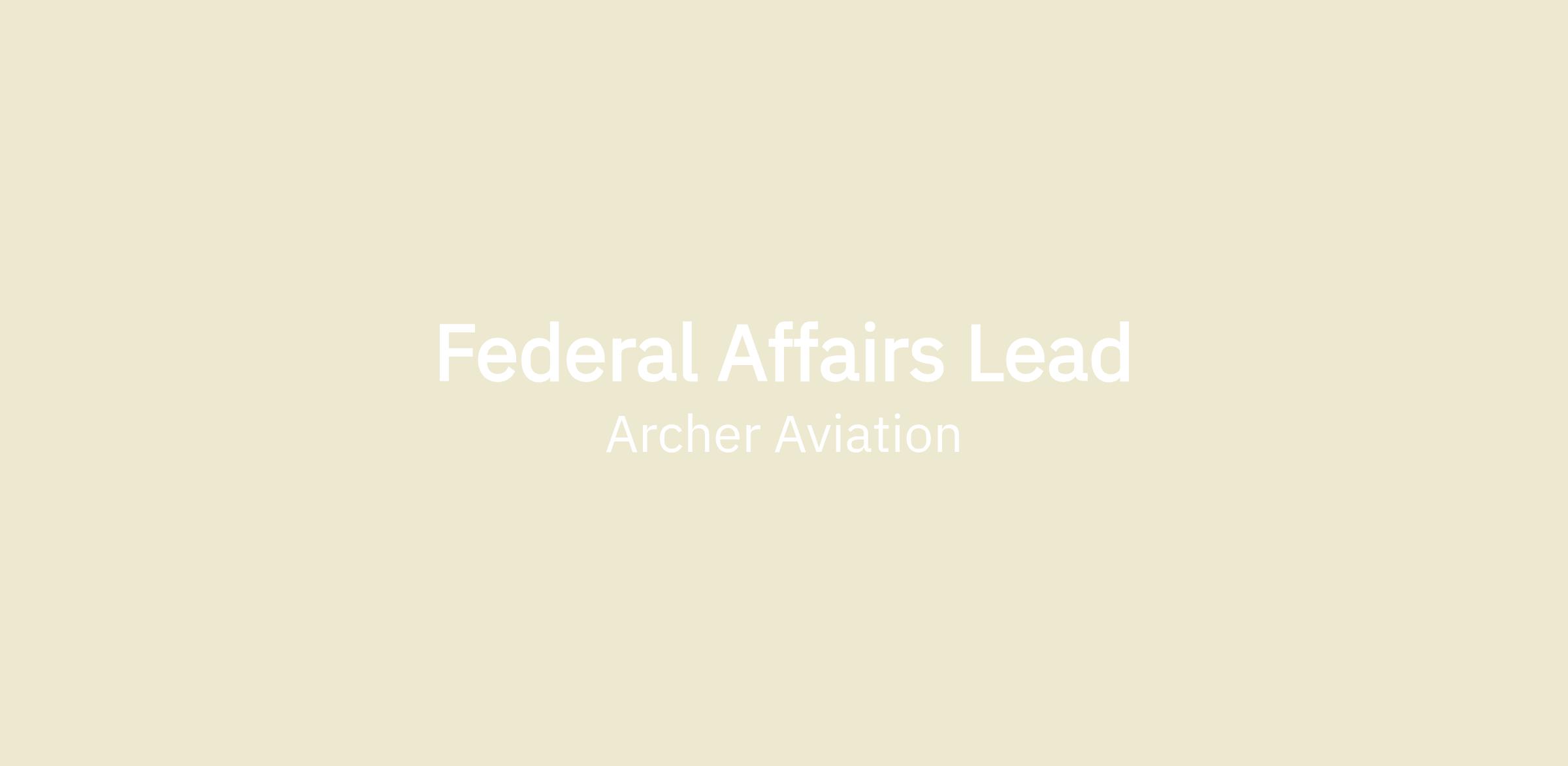 Archer Aviation is hiring a Federal Affairs Lead to strengthen our efforts in shaping the regulatory and policy environment for advanced air mobility (“AAM”). In this role, you will help define the future of air transportation by engaging with federal agencies, Congress, and key industry stakeholders. Your success will be measured by your ability to create a supportive policy framework, build strong relationships, and effectively represent Archer’s mission to transform urban air mobility.