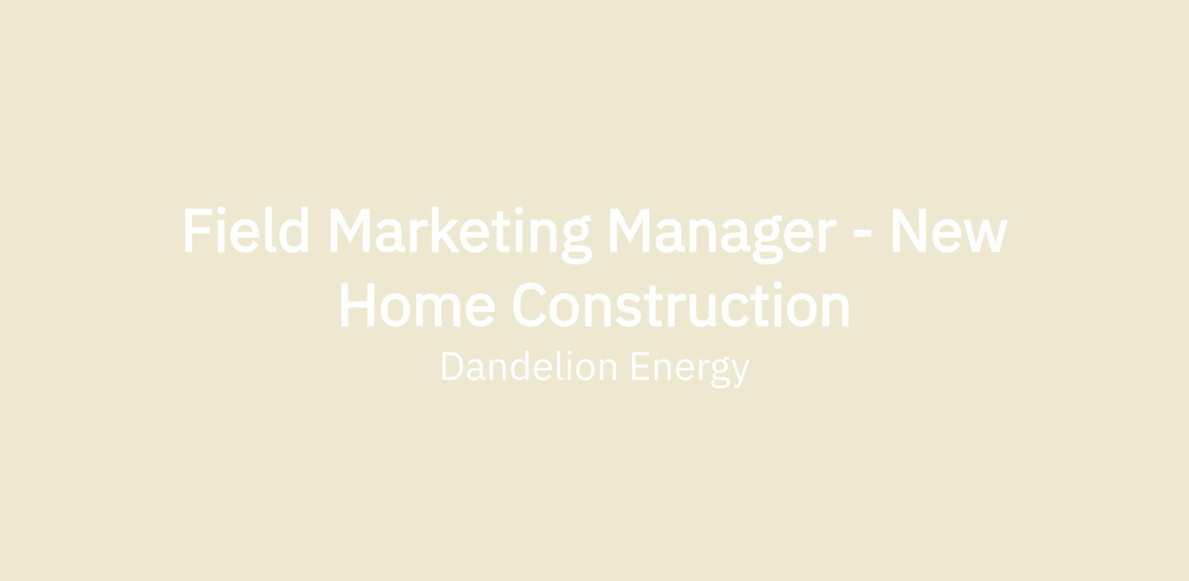 Dandelion Energy is seeking a driven, strategic Field Marketing Manager to serve as our on-the-ground expert and brand ambassador in on the East Coast, focused on supporting our largest homebuilder partners.