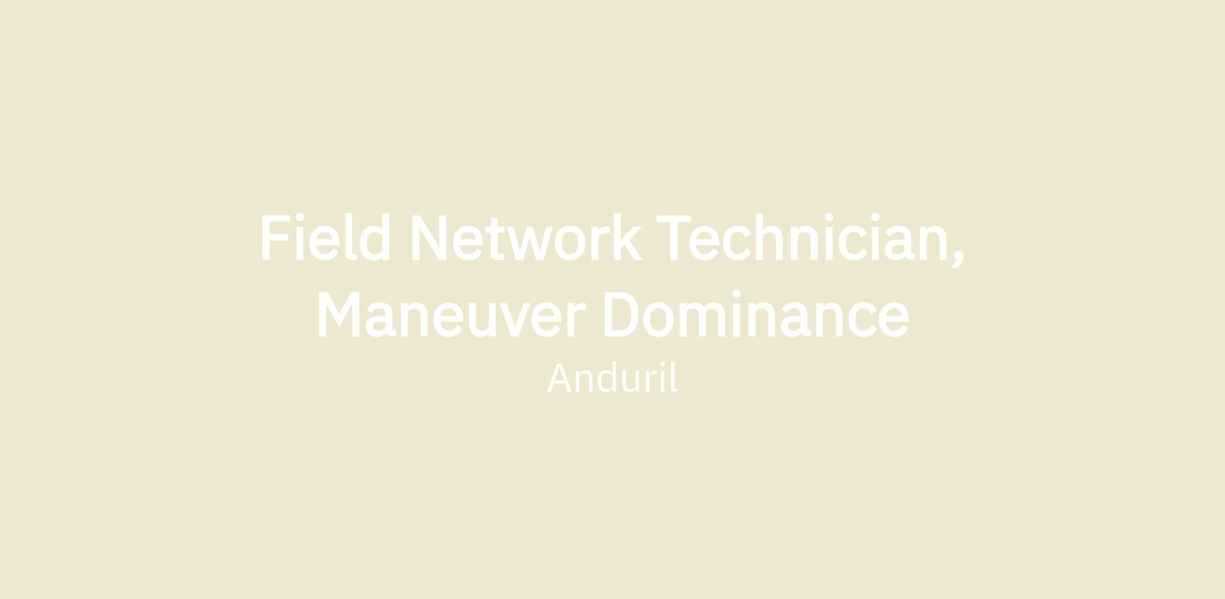 Field Network Technician, Maneuver Dominance