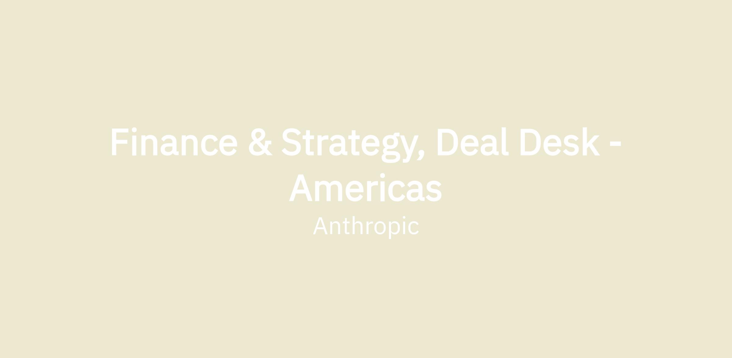 You will play a critical role in scaling our revenue by managing complex deals and developing standardized processes that balance speed with control. You'll work at the intersection of finance, sales, and legal teams to ensure our products reach customers to support Anthropic's rapid growth while maintaining the financial discipline and risk management practices essential for a frontier AI company. You'll have the opportunity to build scalable processes from the ground up and directly impact some of our most strategic customer relationships.