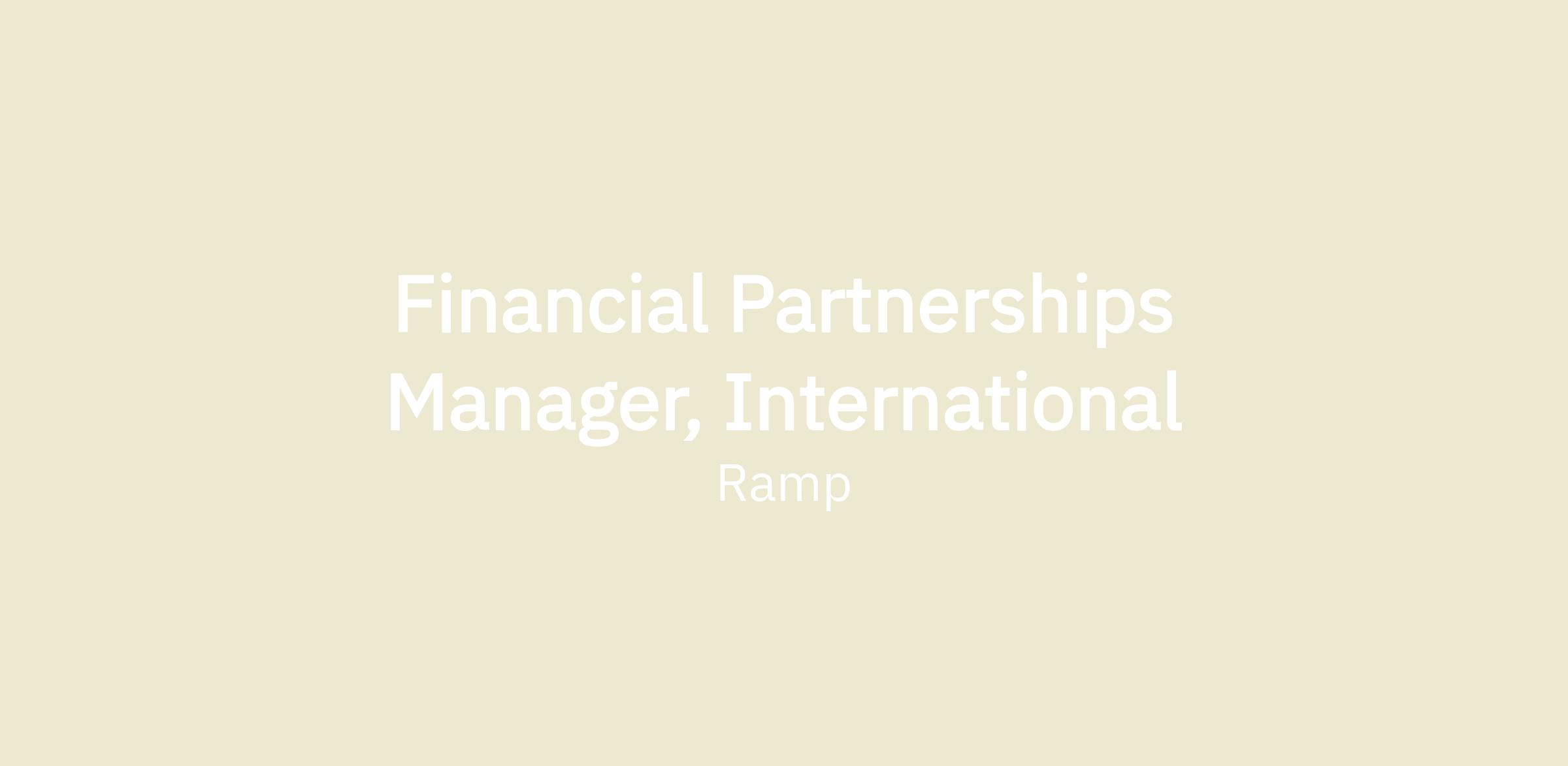 We are looking for a Financial Partnerships Manager to join our team to shape and build Ramp's international and cross border payment strategy.
