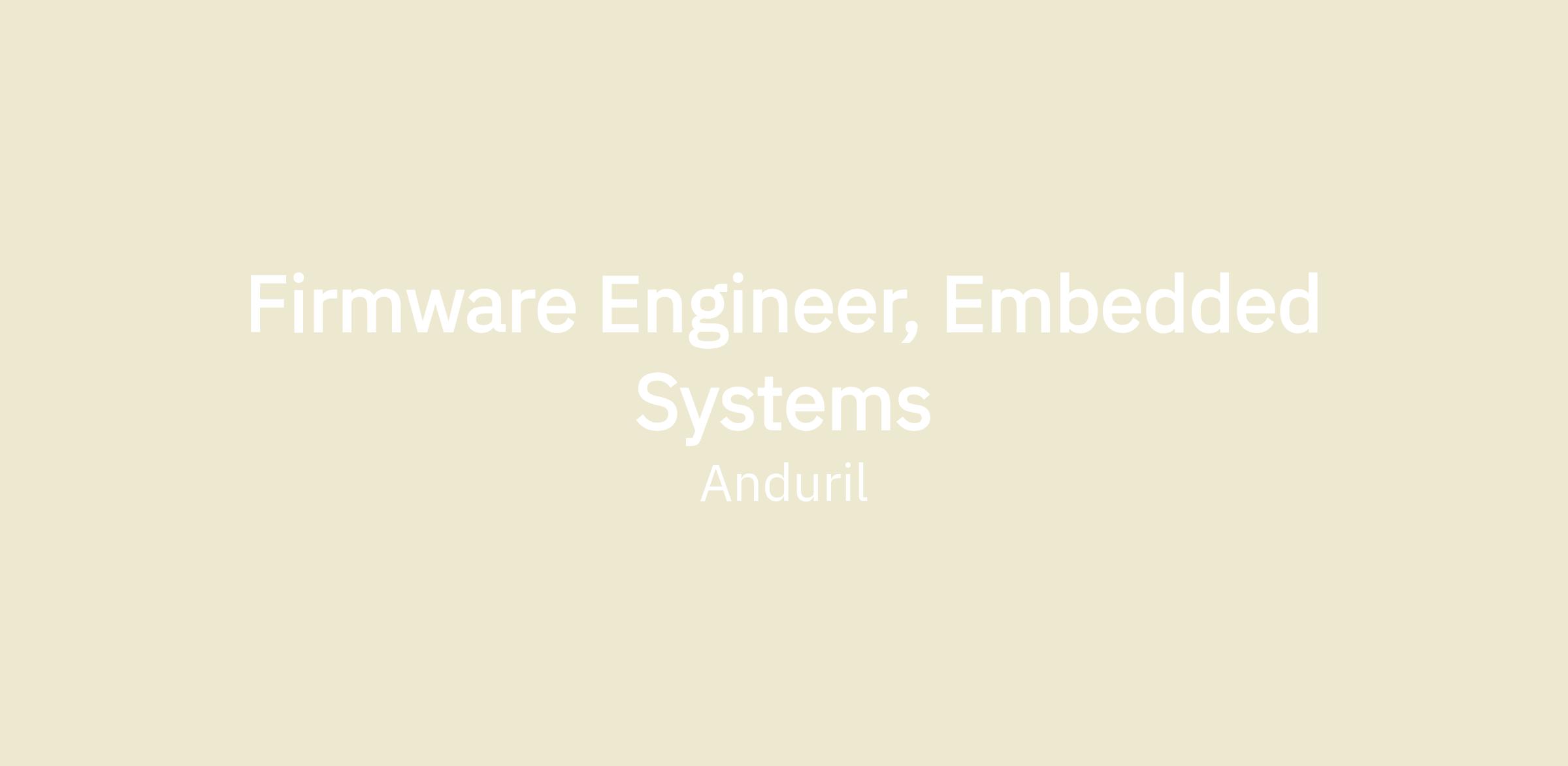 Anduril is seeking a Firmware Engineer to join our team based in Costa Mesa, CA. The firmware team at Anduril develops core technology used across multiple products such as as Menace, Dive-XL, Ghost, and Roadrunner. We work in close coordination with Electrical Engineering to develop hardware and software solutions to some of the hardest problems facing our customers. You'll contribute low level firmware development for systems operating on land, sea, and air.