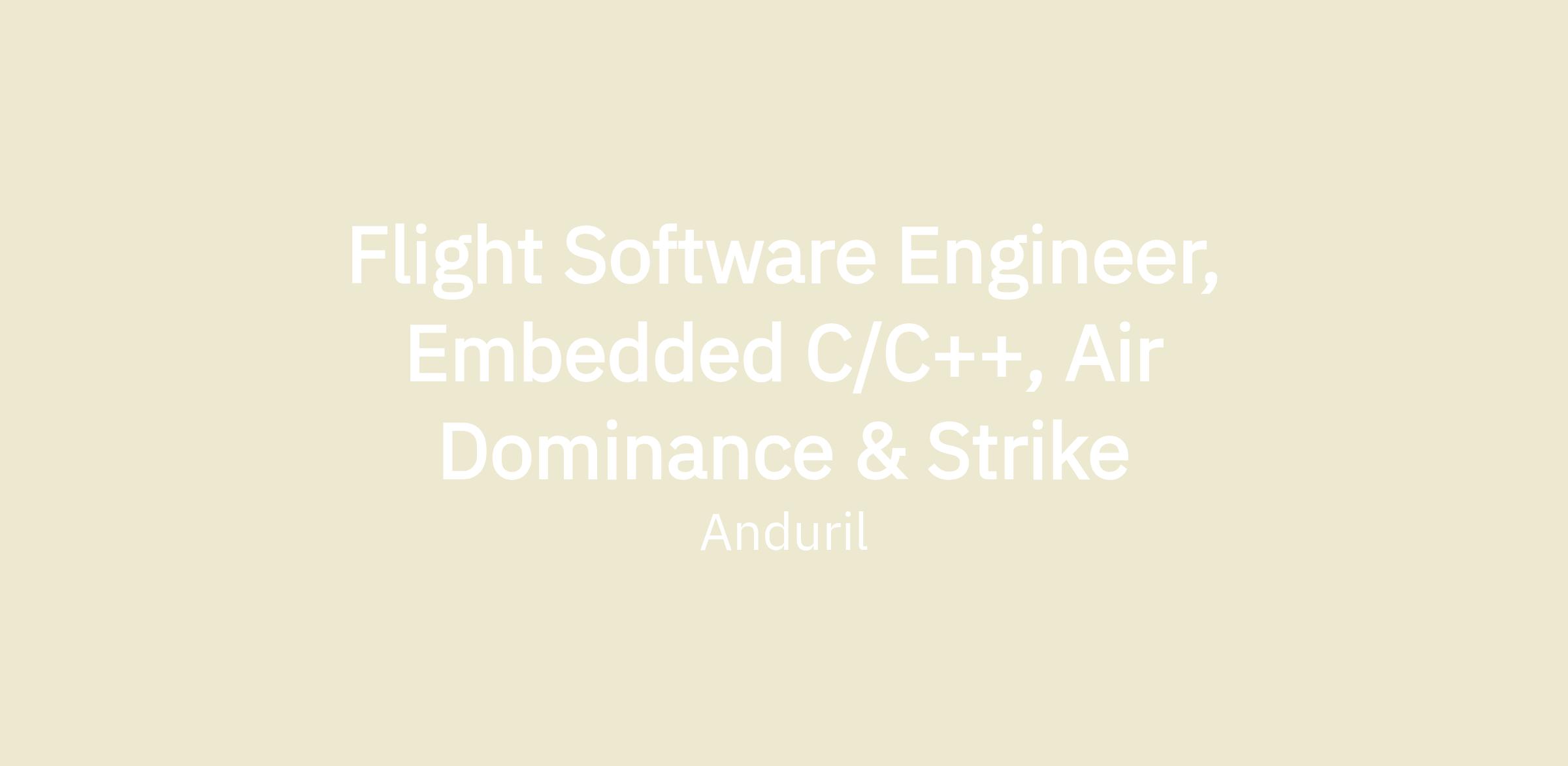 As a Flight Software Engineer, you will be responsible for developing the microcontroller embedded software that powers Anduril’s aircraft while working alongside a team of engineers with a diverse set of backgrounds and skills. Anduril has a collaborative culture with plenty of opportunities for ownership. As an early member of the team, your decisions today will have a large impact on the company now and into the future, as well as on our customers!