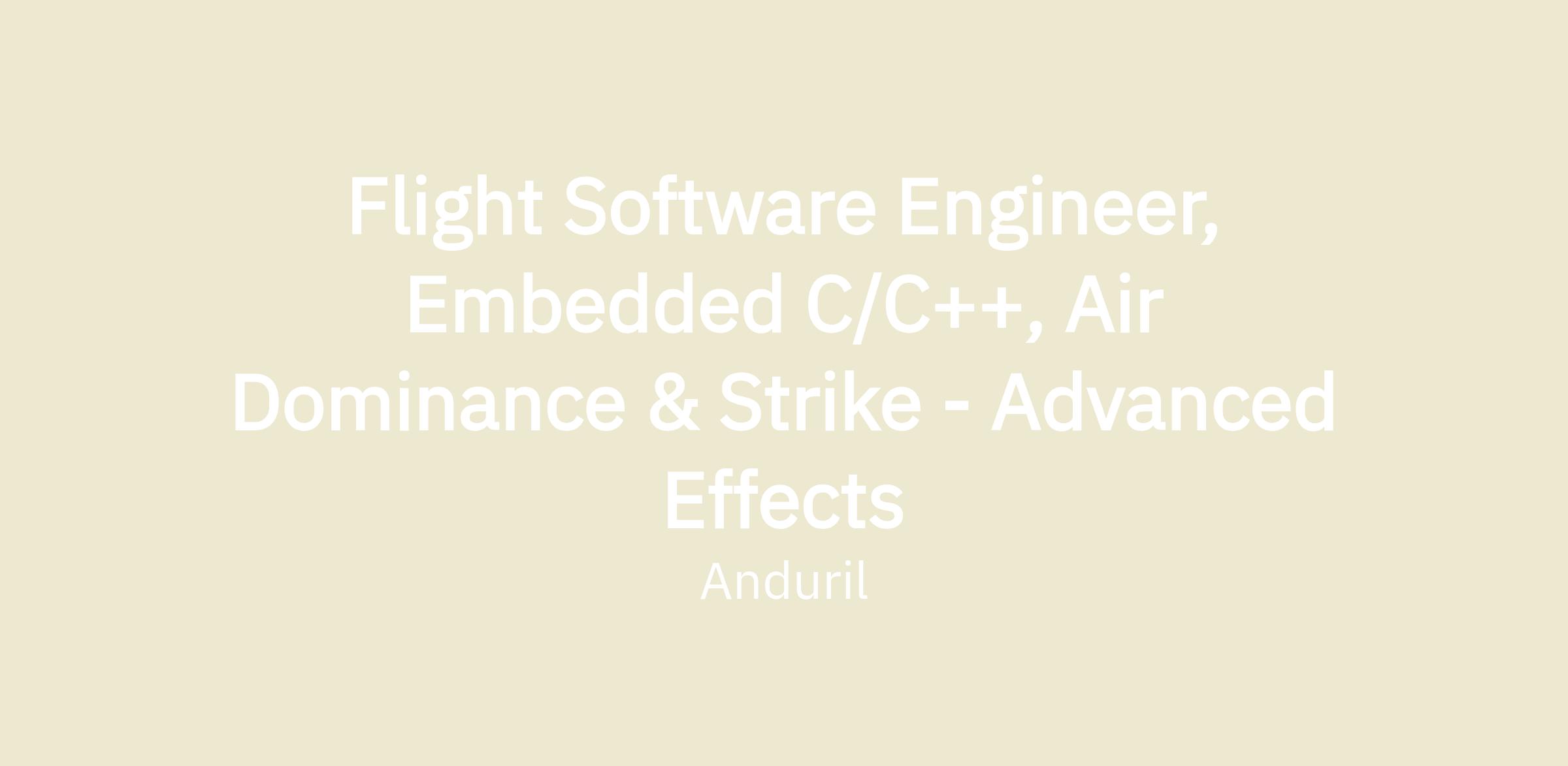 The Flight Software team at Anduril develops flight computer vehicle software for all airborne vehicles. The right person for this role has experience in both commercial (product focused) and public sector (defense) technical environments, and is looking to leverage their passion for avionics and flight software.