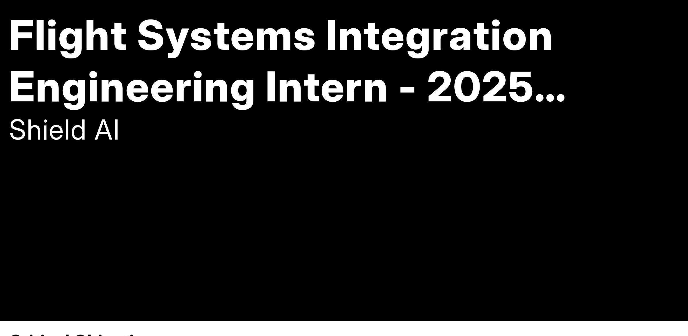 Are you a passionate and innovative student interested in being a part of a team building AI autopilots? Do you want to work on a product that will make a positive impact? Do you want to work alongside mission driven and values focused teammates? Shield AI is just the place for you!