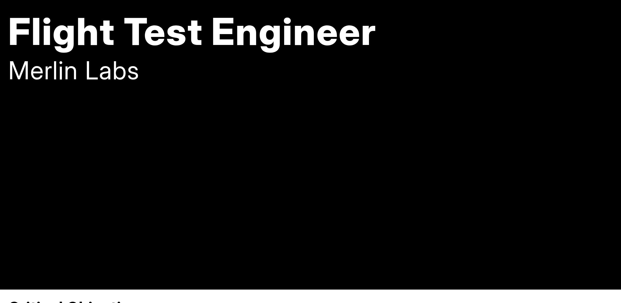 Do you enjoy hands-on testing at the cutting edge of aerospace technology? Do you enjoy fast paced problem solving? Are you self-motivated and have a critical eye for flight safety and flight test details? Do you love the idea of more widely proliferated and safer flying machines, accessible to all? If so, you might be a good fit to lead our Flight Test Engineering team here at Merlin.