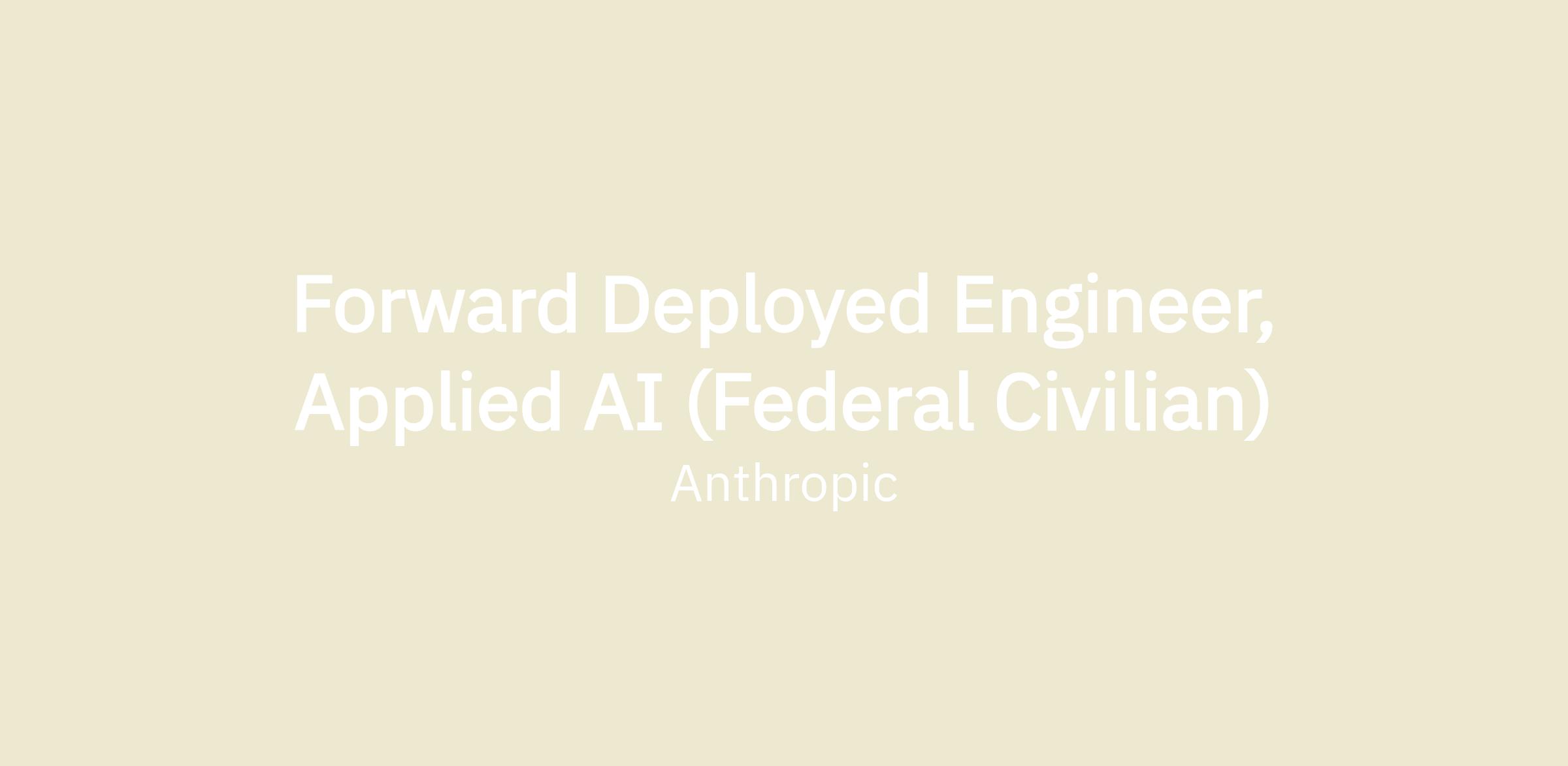 As a member of the Applied AI team at Anthropic, you will be a Forward Deployed Engineer (FDE) who embeds directly with our most strategic federal civilian (and, occasionally, state and local) customers to drive transformational AI adoption. You will collaborate closely with customer teams to ship advanced AI applications that solve real world business problems. Our FDEs engage with customers to accelerate the adoption of existing products and create new applications built on our models.