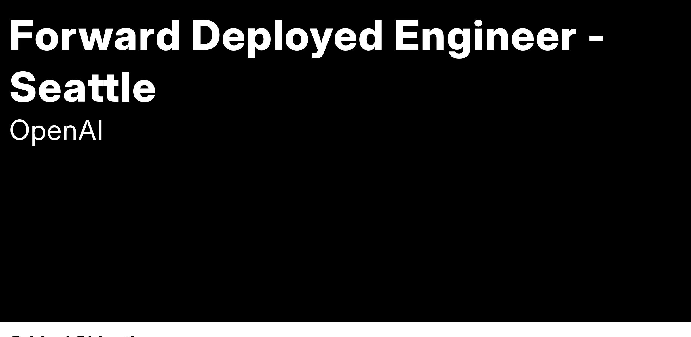 Over the past year, we have experienced a significant increase in demand for OpenAI's hands-on technical expertise to translate abstract ideas into production applications. We’ve established a Forward Deployed Engineering (FDE) team who will work closely with our most strategic customers to deeply understand their use cases and design, build, and implement products for them. As one of our founding FDEs, you will deploy these solutions on customer infrastructure for the world's most influential businesses, driving real business impact through our newest models and our own innovations in technical delivery.
