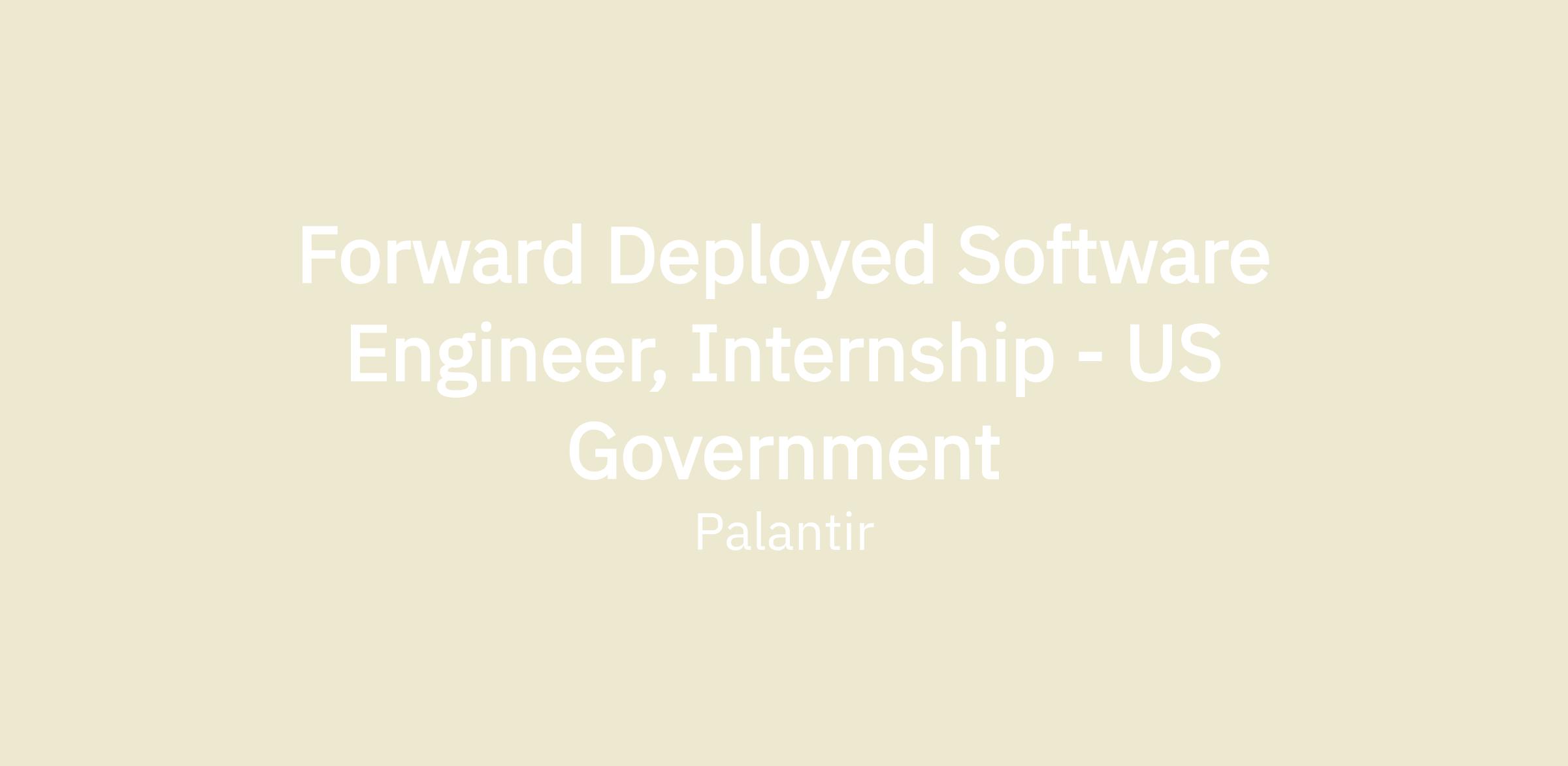 Forward Deployed Software Engineer, Internship - US Government