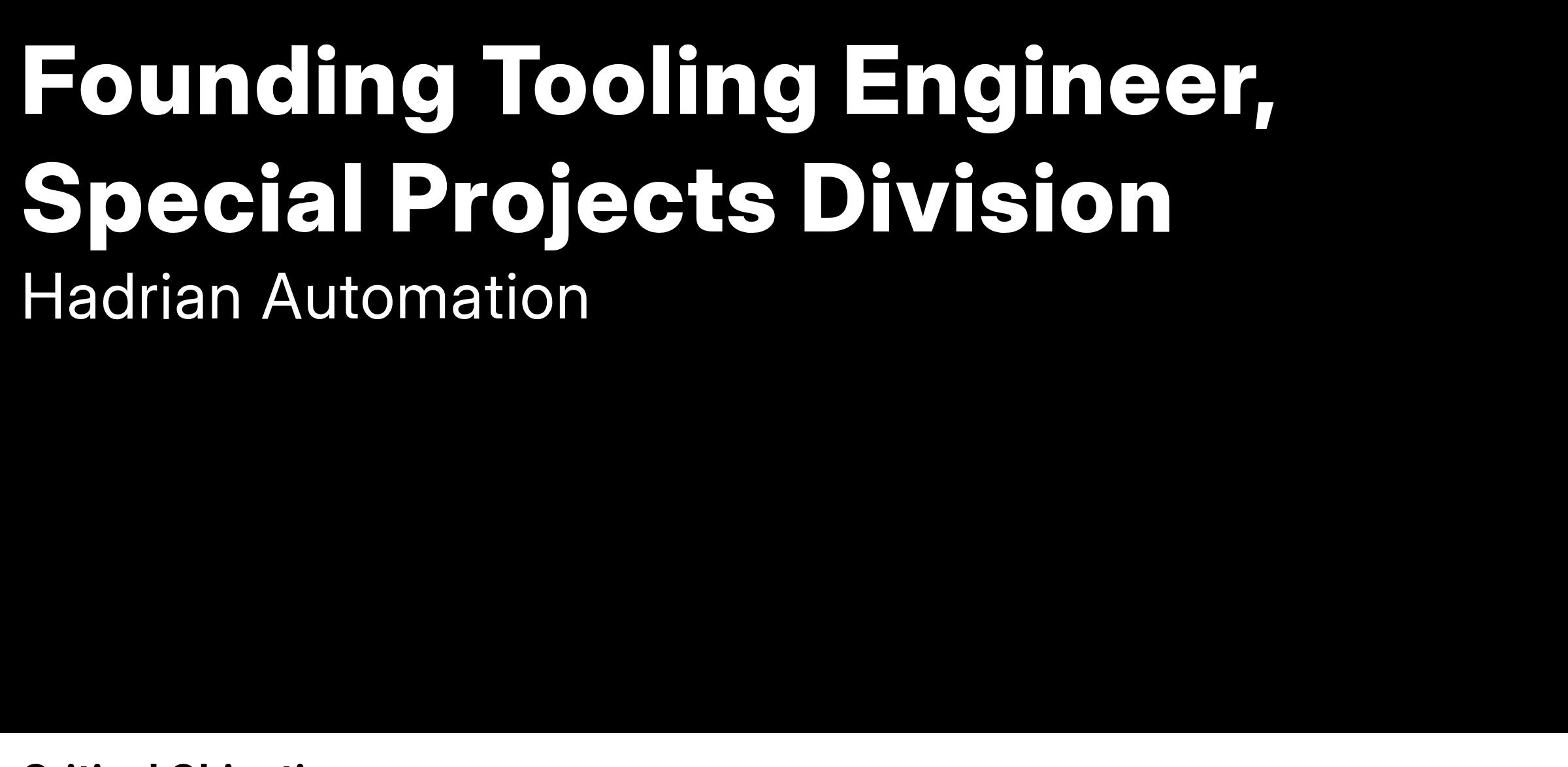 You will be a founding member of Hadrian’s new Special Projects division, collaborating directly with the CEO and engineering leadership. This division is responsible for focusing on ambitious R&D projects and serving as engineering experts on new business opportunities.