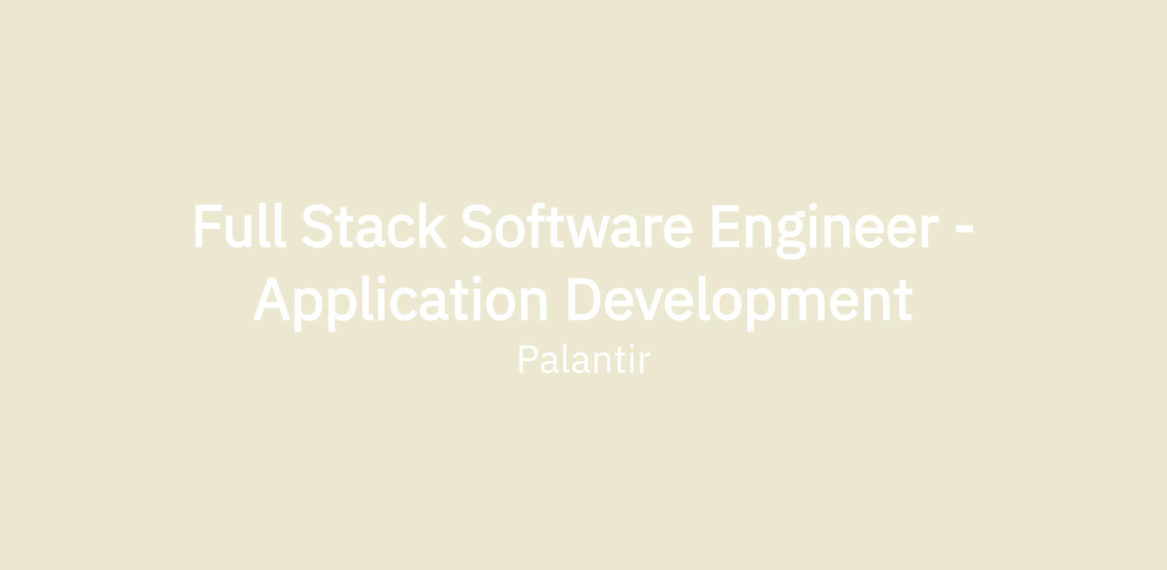 Full Stack Software Engineer - Application Development