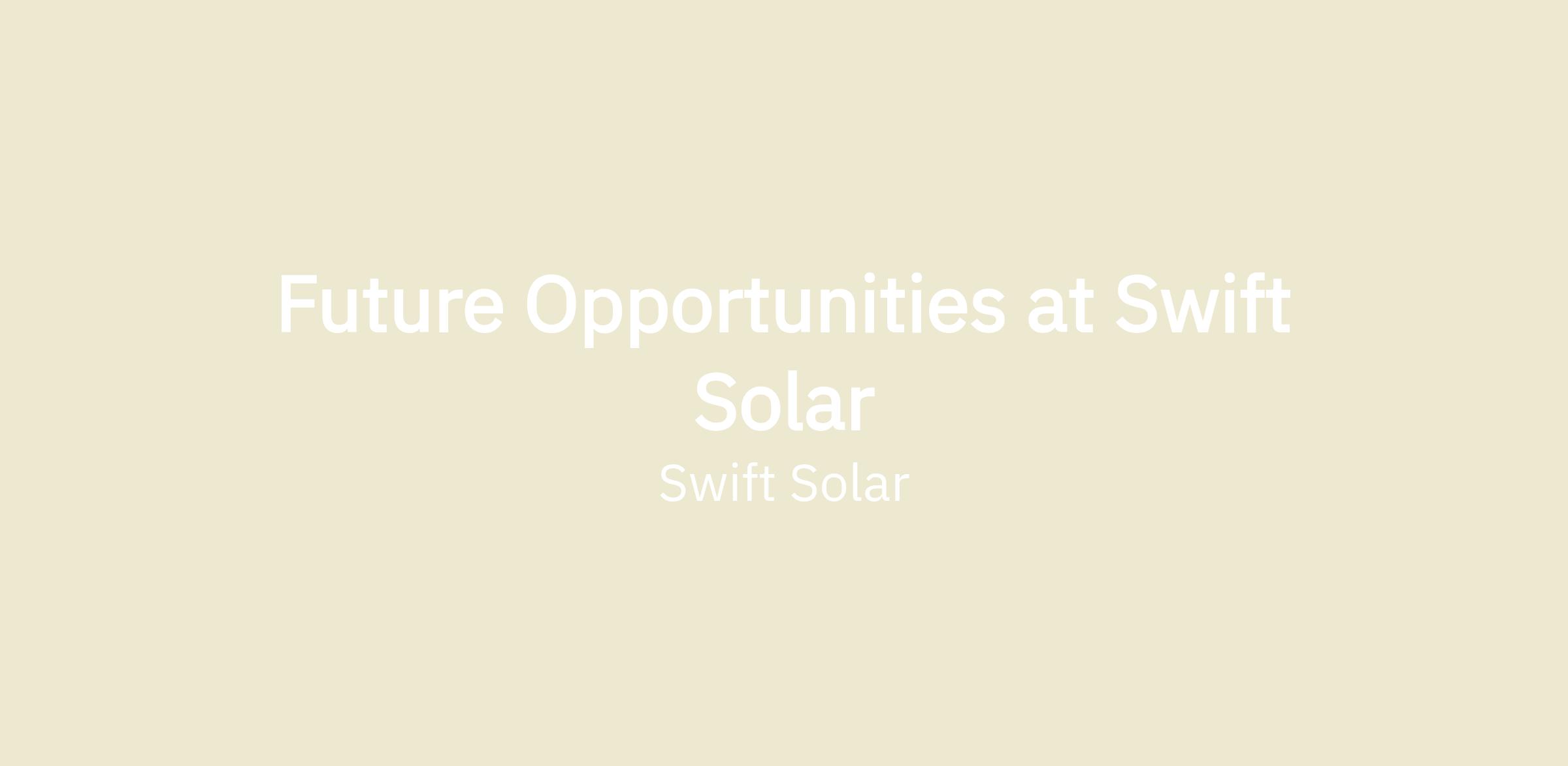 At Swift Solar, we’re always looking for passionate, talented individuals who are ready to help us revolutionize clean energy. While we may not have the exact role for you today, we’d love to connect with you to discuss future opportunities as they arise.