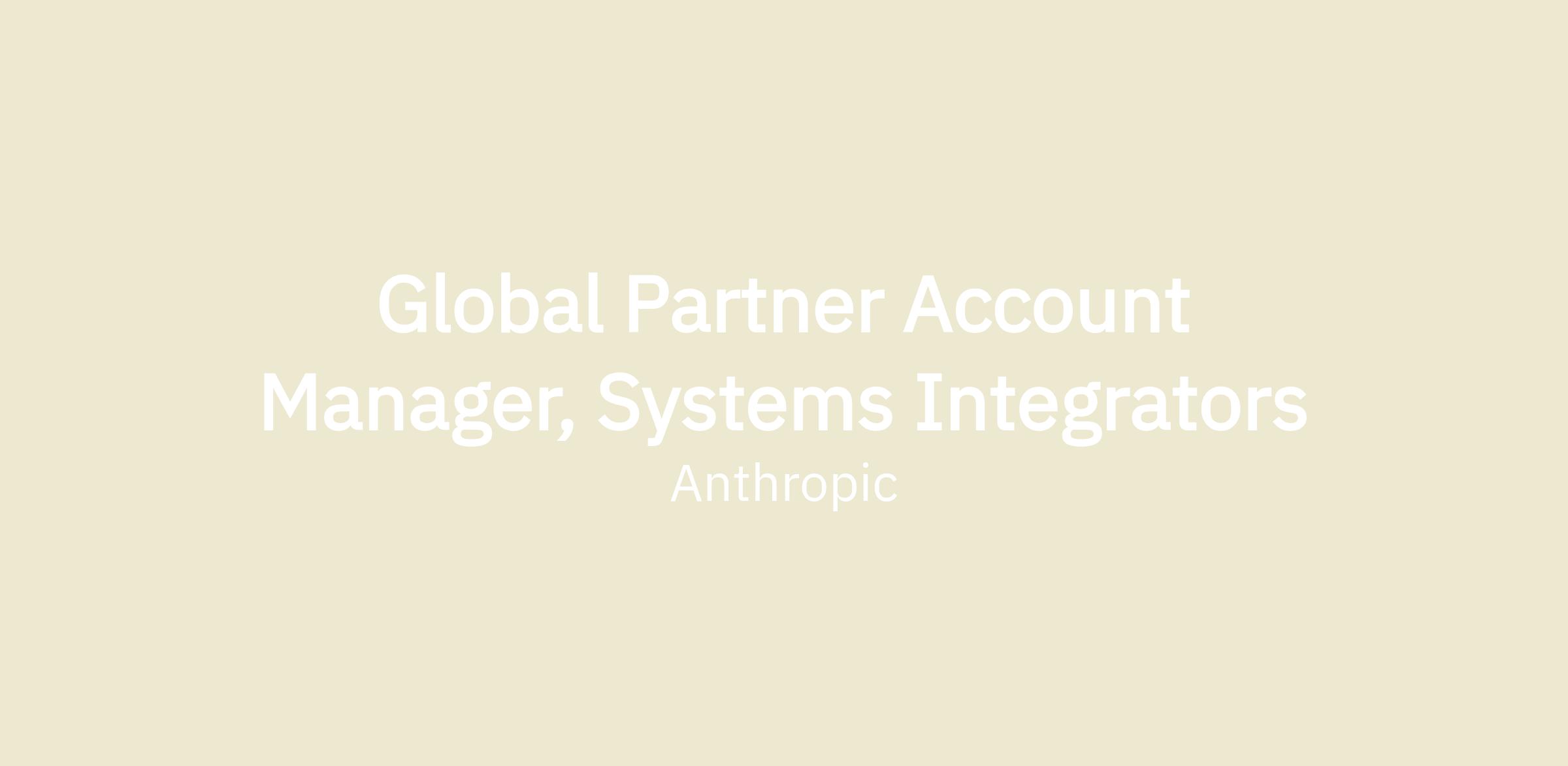 As a Global Partner Account Manager for Systems Integrators at Anthropic, you will drive revenue growth through our strategic SI partner ecosystem. This role is critical to scaling how we engage, enable, and grow alongside our SI partners who are bringing Claude to enterprise customers worldwide. You'll own the commercial relationship with key partners, develop joint go-to-market strategies, and build the operational frameworks that transform our emerging partner program into a world-class revenue engine.