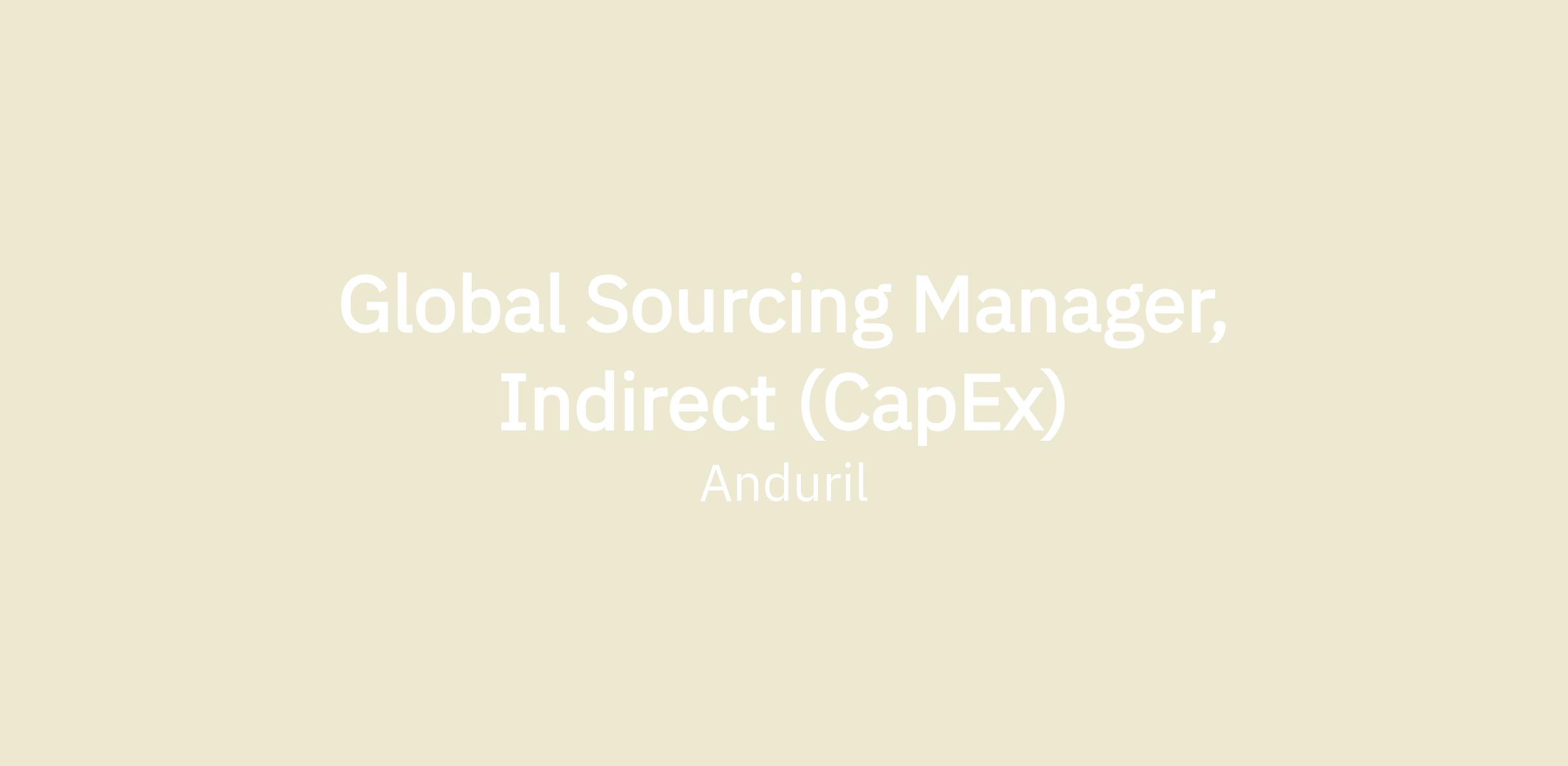The Global Sourcing Manager, Indirect CapEx is the domain expert in dedicated CapEx commodities for Anduril Industries. This role will be responsible for developing new supplier and new sourcing partnerships that can be incorporated into new infrastructure/products, as well as existing infrastructure/products to improve their technologies, cost, and quality. This hire will work with the broader internal cross functional teams to evaluate the opportunities, while ensuring commercial agreements, intellectual property, and statement of works are accurate and well established prior to pipelining.
