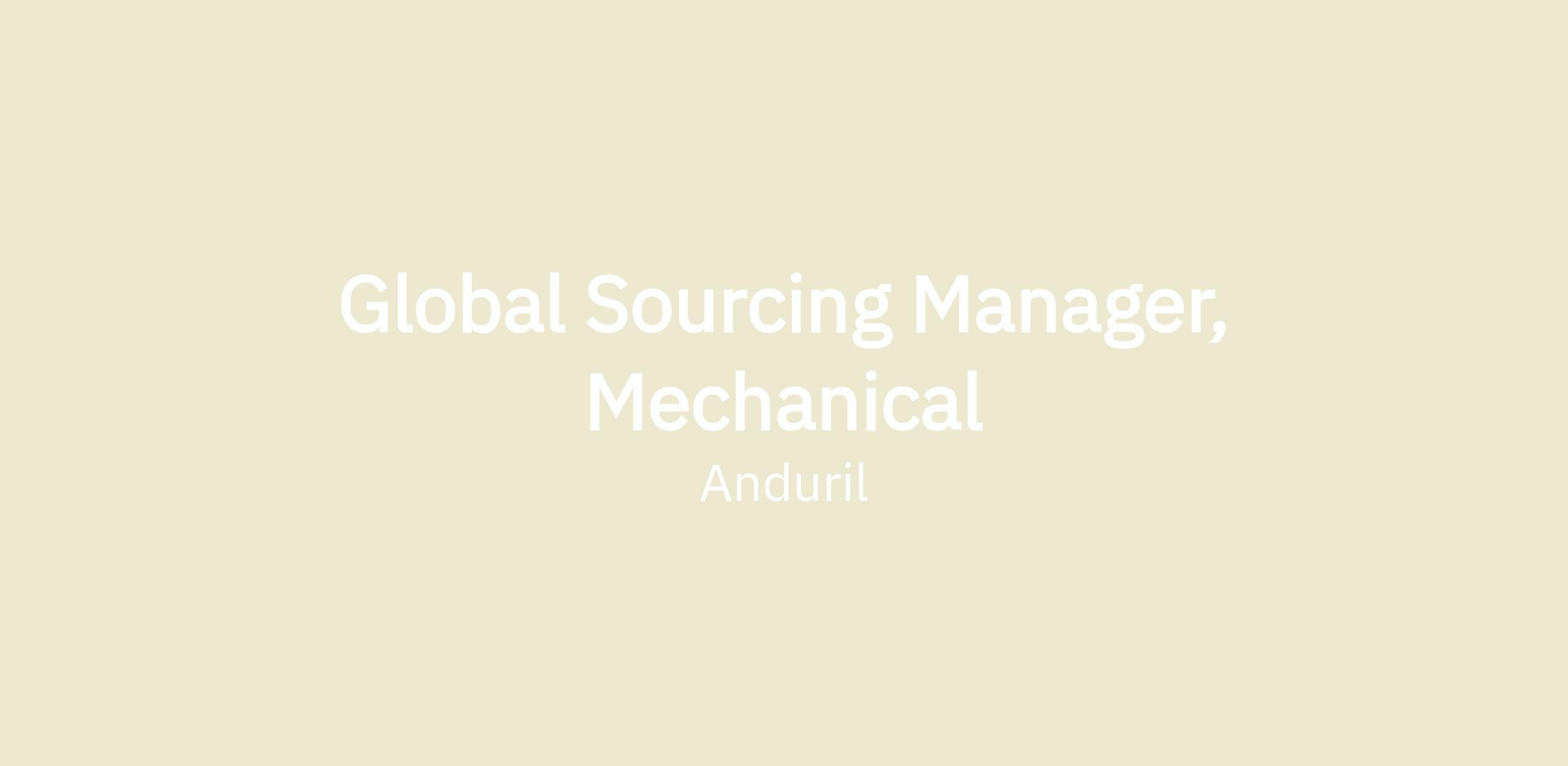 The Global Sourcing Manager, Mechanical is the domain expert for the mechanical commodities (machining, sheet metal, etc.) for Anduril Industries. This is a proactive, high-impact role in securing critical components, materials, and services that power our products. This role will be responsible for developing new supplier and new sourcing partnerships that can be incorporated into new products, as well as existing products to improve their technologies, cost, and quality. There is broad internal cross functional partnership to evaluate supplier opportunities, while ensuring commercial agreements, intellectual property, and statement of works are accurate and well established prior to pipelining.