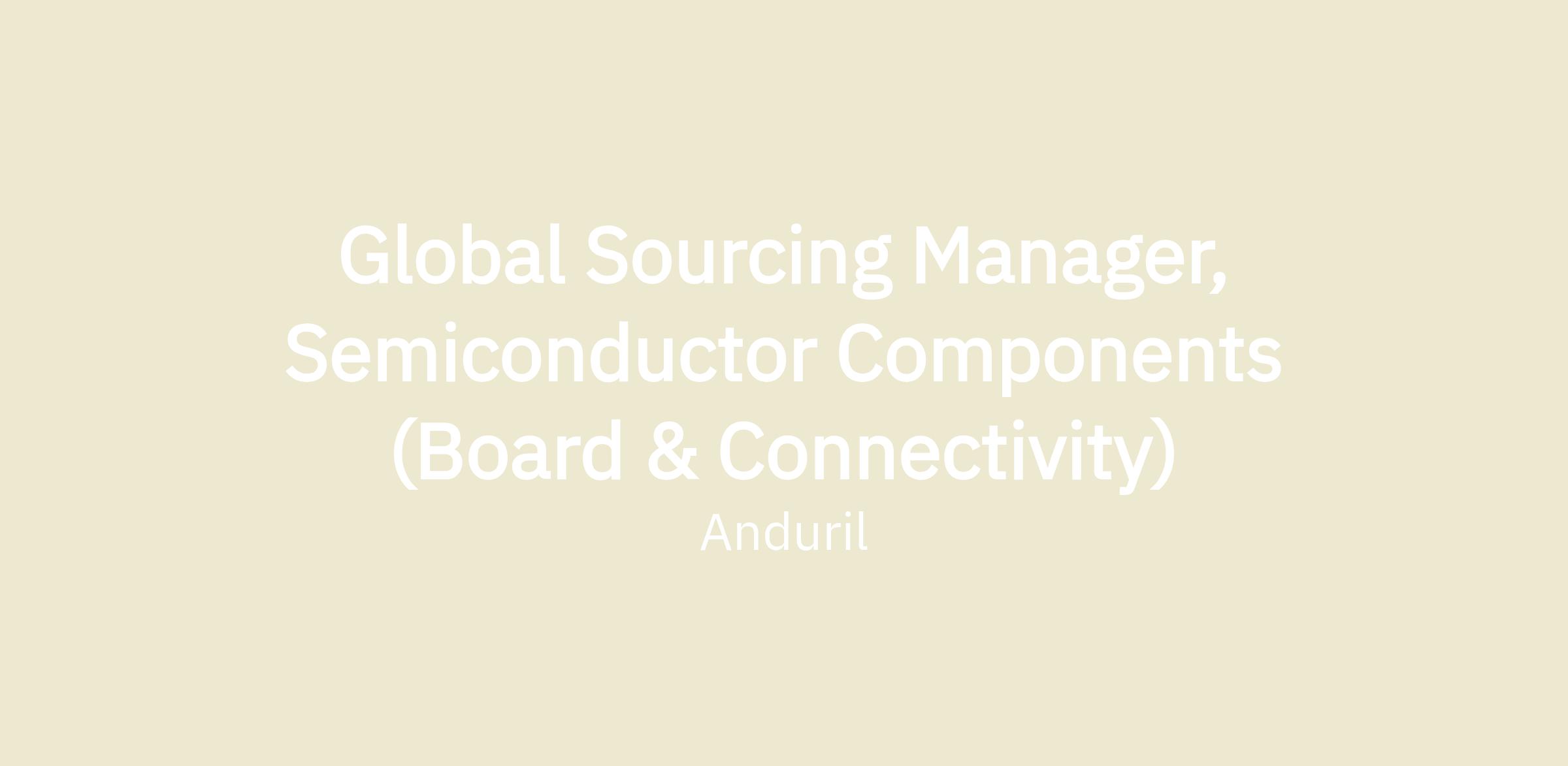 The Global Sourcing Manager, Semiconductor Tactical (Board & Connectivity) is the domain expert for the semiconductor component commodities for Anduril Industries. This is a proactive, high-impact role in securing critical components, materials, and services that power our products. This role will be responsible for developing new supplier and new sourcing partnerships that can be incorporated into new products, as well as existing products to improve their technologies, cost, and quality. There is broad internal cross functional partnership to evaluate supplier opportunities, while ensuring commercial agreements, intellectual property, and statement of works are accurate and well established prior to pipelining.