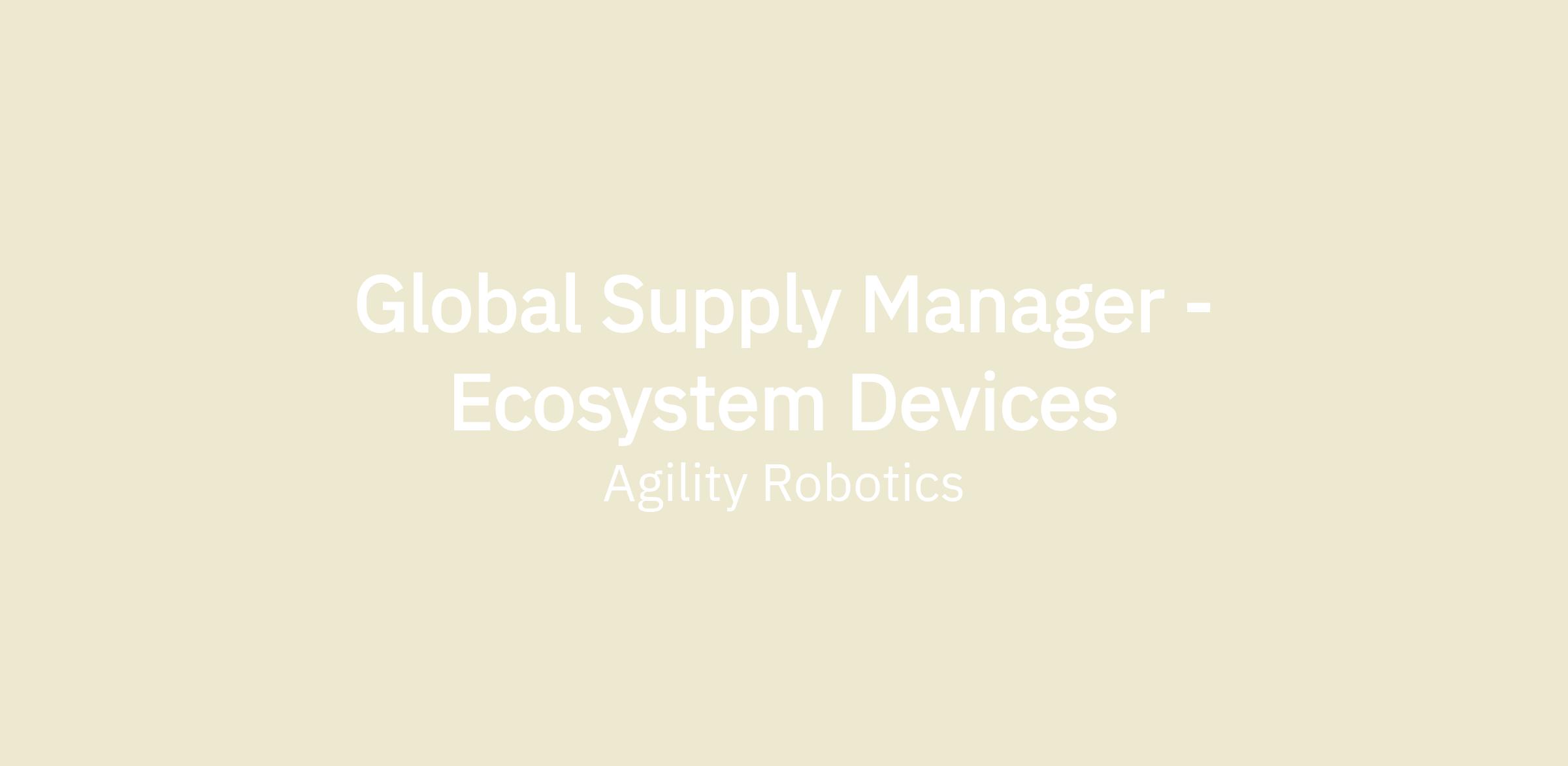 As a Global Supply Manager – Ecosystem Devices, you will lead the sourcing and supply strategy for Agility Robotics’ ecosystem devices. These devices represent the physical and digital touchpoints that connect our robots, people, and the world around them, enabling seamless interaction and delivering positive customer outcomes with high reliability.