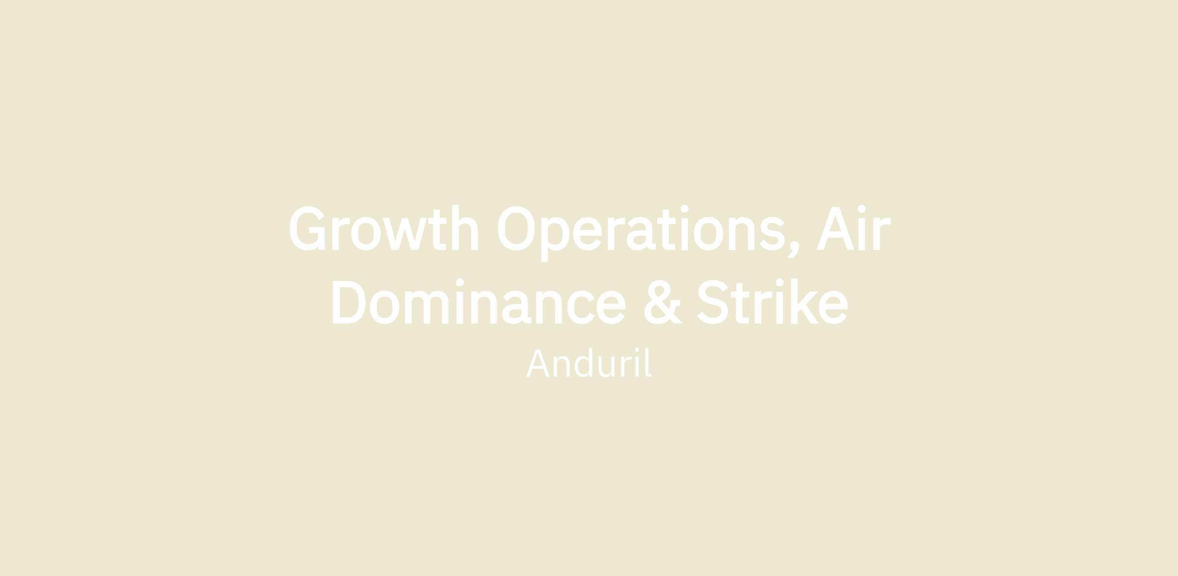The goal of Anduril’s Air Dominance and Strike Division is to fundamentally reshape the way future peer to peer conflicts are fought by developing next generation collaborative combat aircraft, missiles, and the software that powers these autonomous weapons. The AD&S Operations team is a small but mighty team of business generalists who enable the division to scale through hyper-growth while breaking as few things as possible. We’re looking for someone to lead our growth operations function to deeply embed with our Business Development team, optimize sales pipeline health, and translate demand into cross-functional requirements necessary for long-term operational planning.