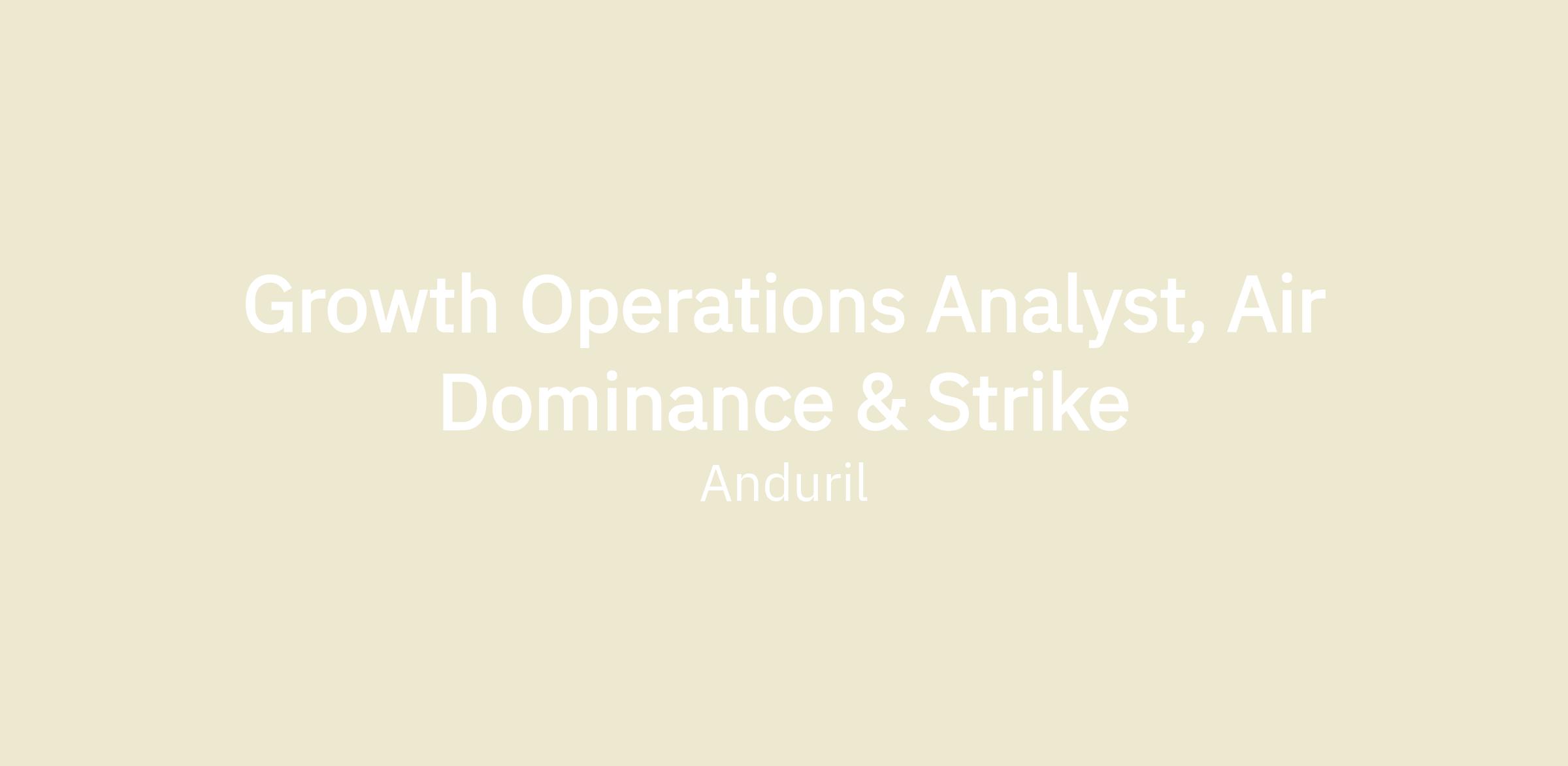 The mission of Anduril’s Air Dominance and Strike Division is to fundamentally reshape the way future peer to peer conflicts are fought by developing next generation collaborative combat aircraft, advanced effects, and the software that powers these autonomous weapons. The AD&S team is looking for a Growth Operations Analyst to deeply embed with our Business Development team to run team operations, optimize sales pipeline health, and sit at the intersection of Growth, Engineering, Proposals, Government Relations among others to drive alignment and execution.