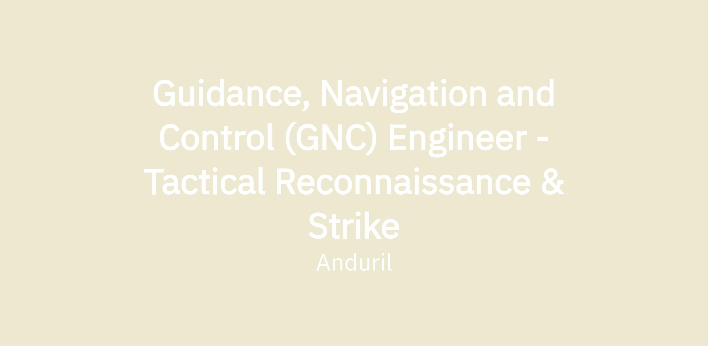 Guidance, Navigation and Control (GNC) Engineer - Tactical Reconnaissance & Strike