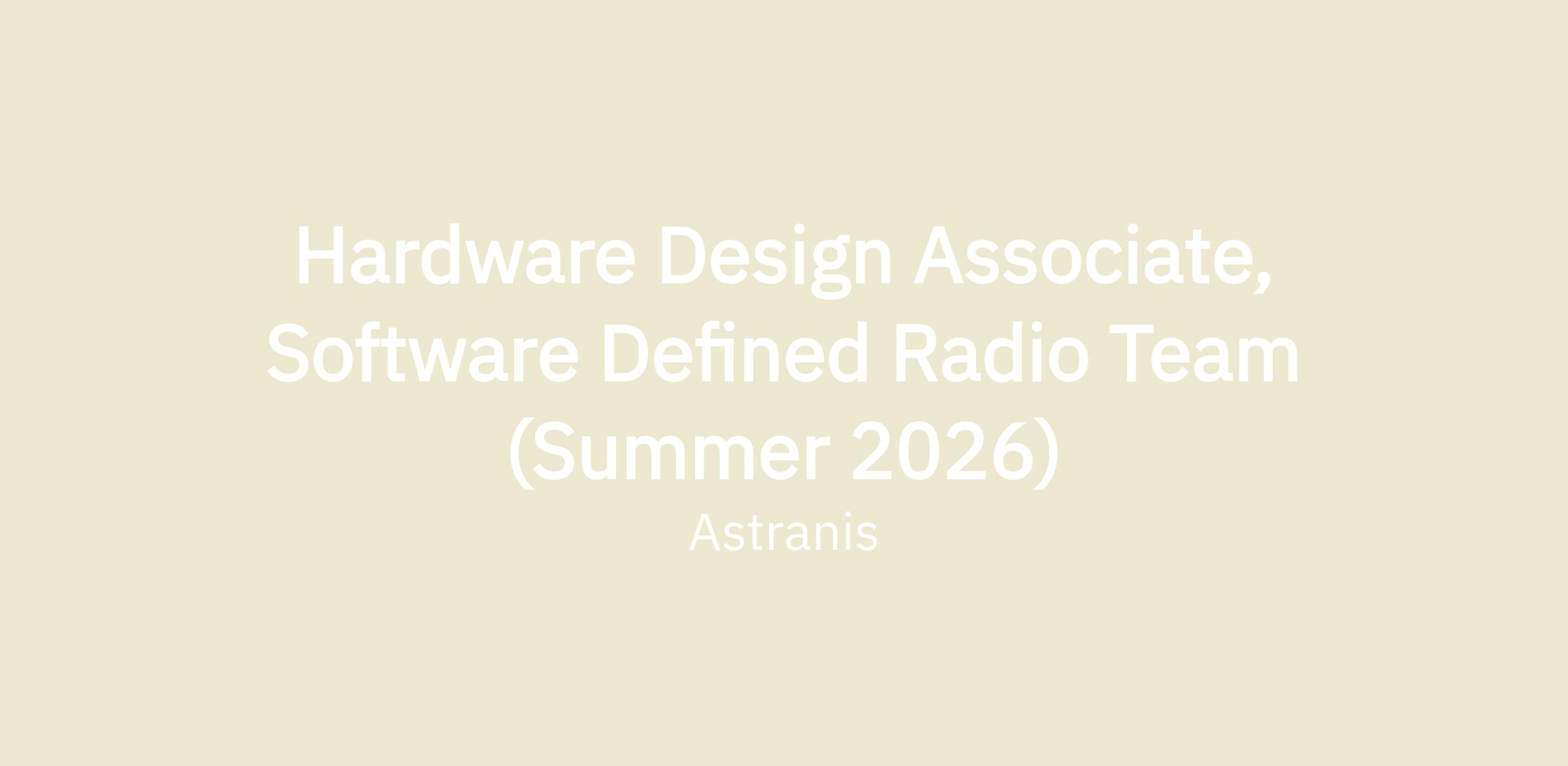 Hardware Design Associate, Software Defined Radio Team (Summer 2026)