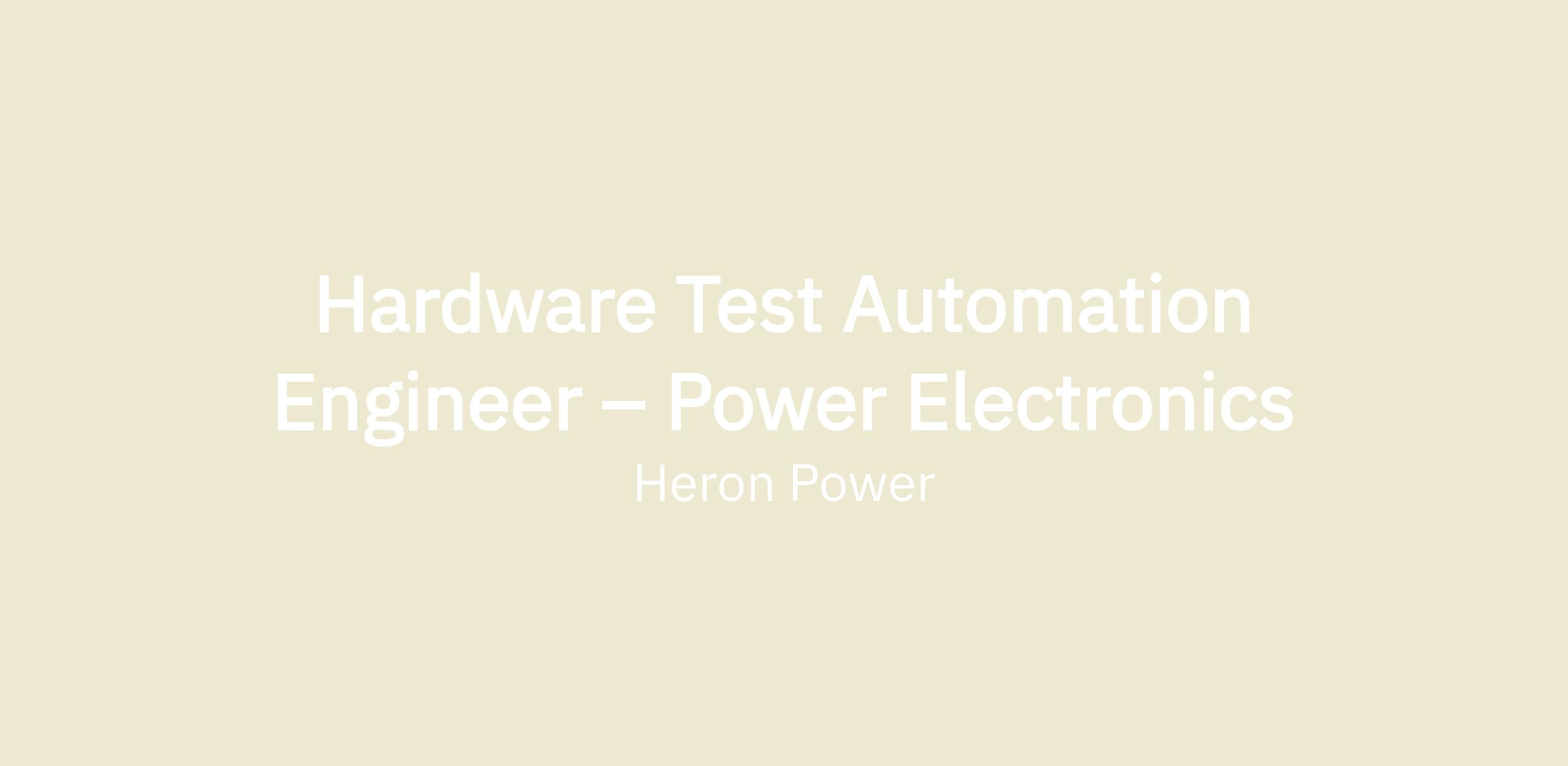 As the Hardware Test Automation Engineer – Power Electronics, you will build the automated hardware test infrastructure that allows us to validate and ship at scale—from PCBA-level functional circuit testing through subsystem validation, end-of-line system testing and all the way to test systems developed for high volume manufacturing of low-voltage electronics and high-power converter assemblies.