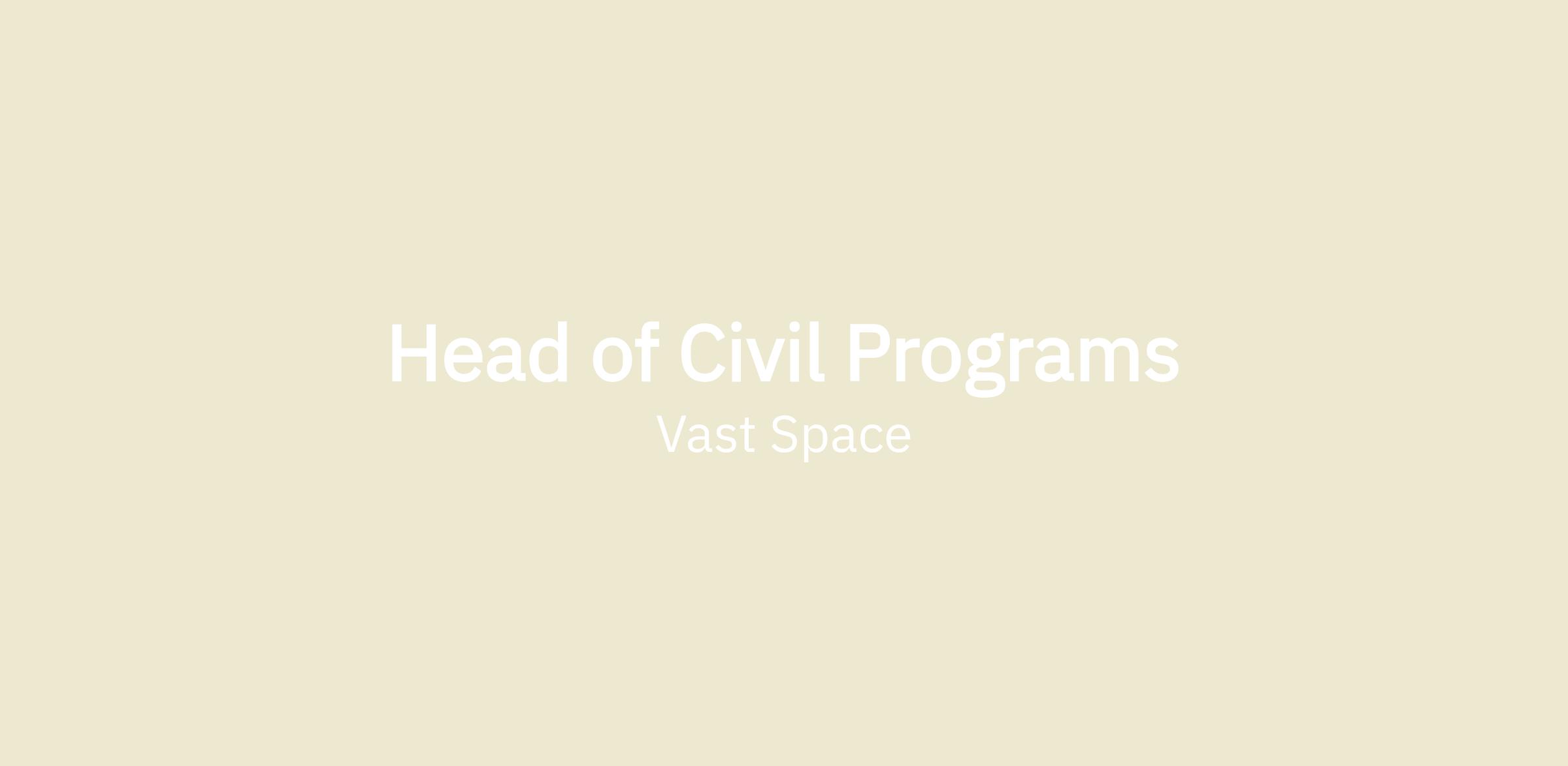 Vast is looking for a Head of Civil Programs, reporting to the Chief Policy Officer, to define and lead Vast’s strategy, engagement, and execution for NASA programs across Haven-1 and future Vast programs.