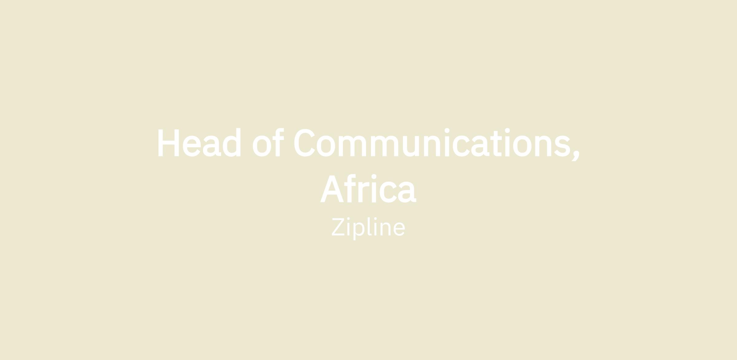 Zipline is looking for a Head of Communications for Africa — a strategic leader who can set and drive an ambitious communications vision while also rolling up their sleeves to execute in a fast-paced, high-growth, resource-constrained environment.