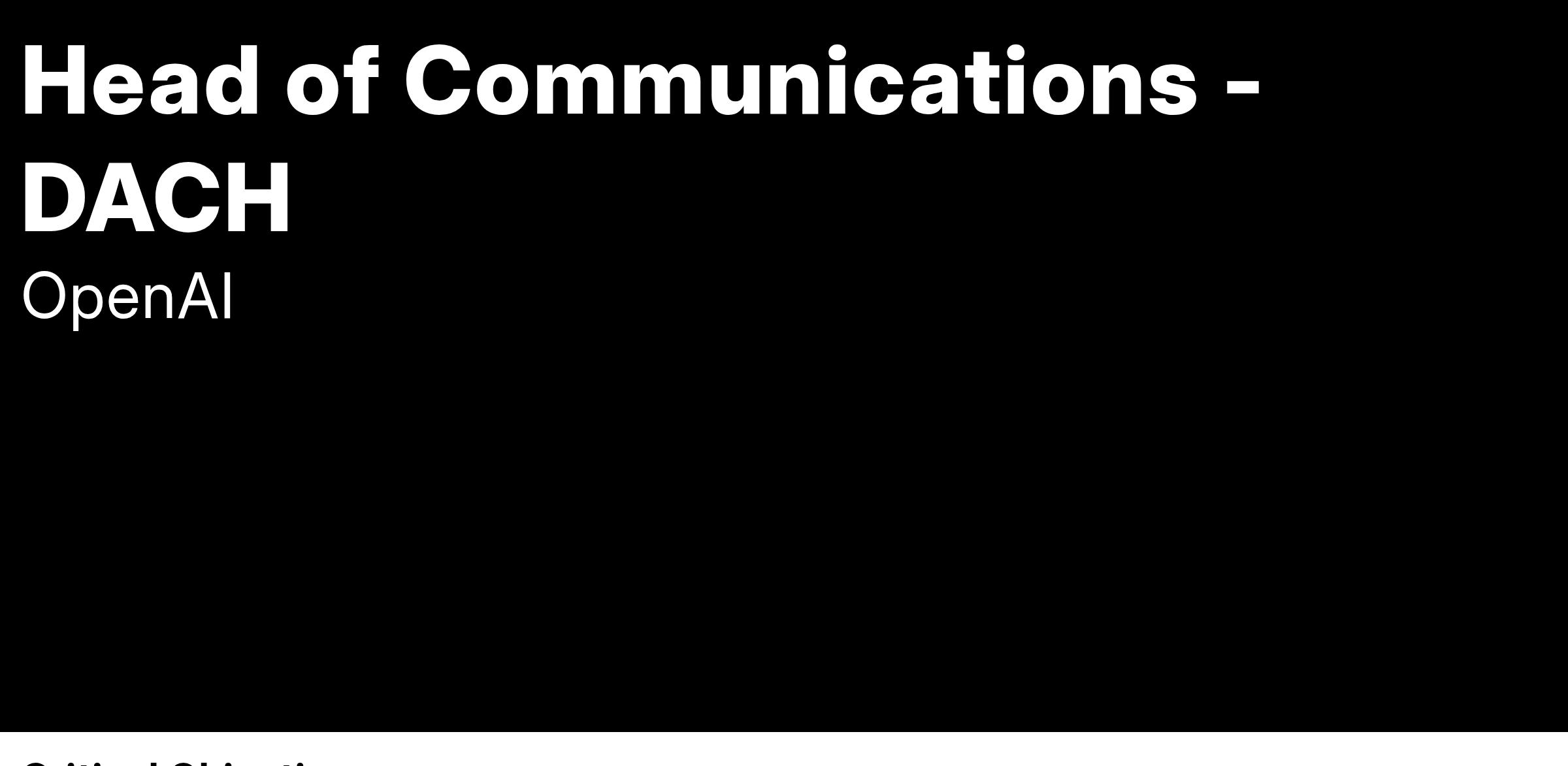 We're looking for an exceptional communications professional, based in Germany to lead OpenAI's communications in the country while also contributing to broader efforts across DACH.