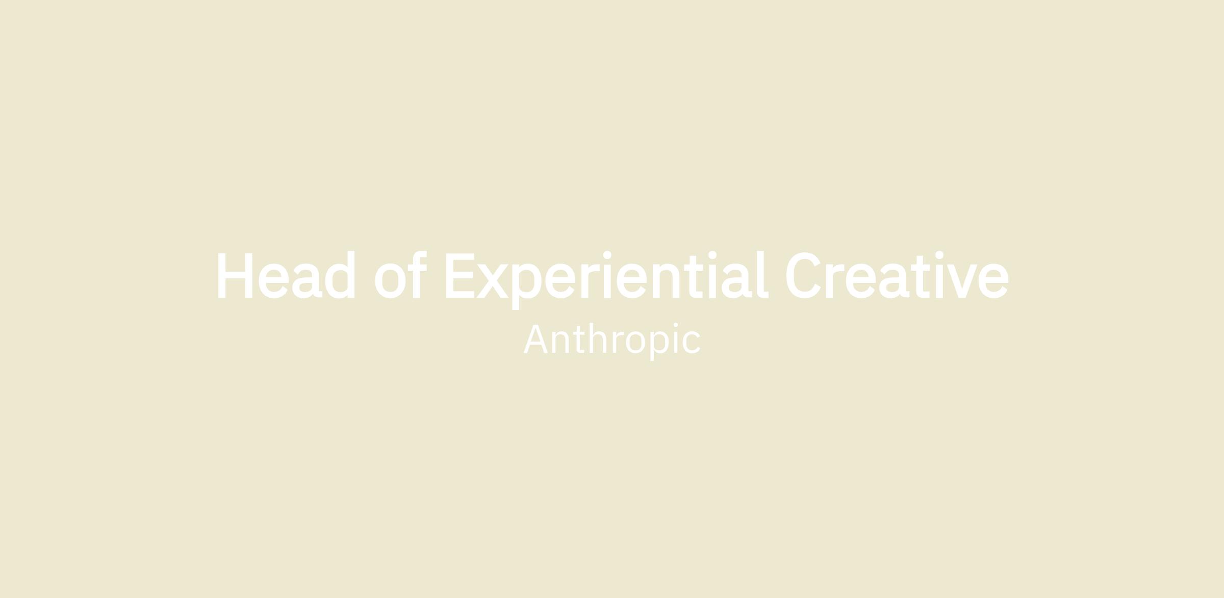 We're looking for a Head of Experiential Creative to build and lead event design and brand experiences at Anthropic. You'll define how Anthropic shows up in physical spaces, from trade shows and conferences to brand partnerships and activations.