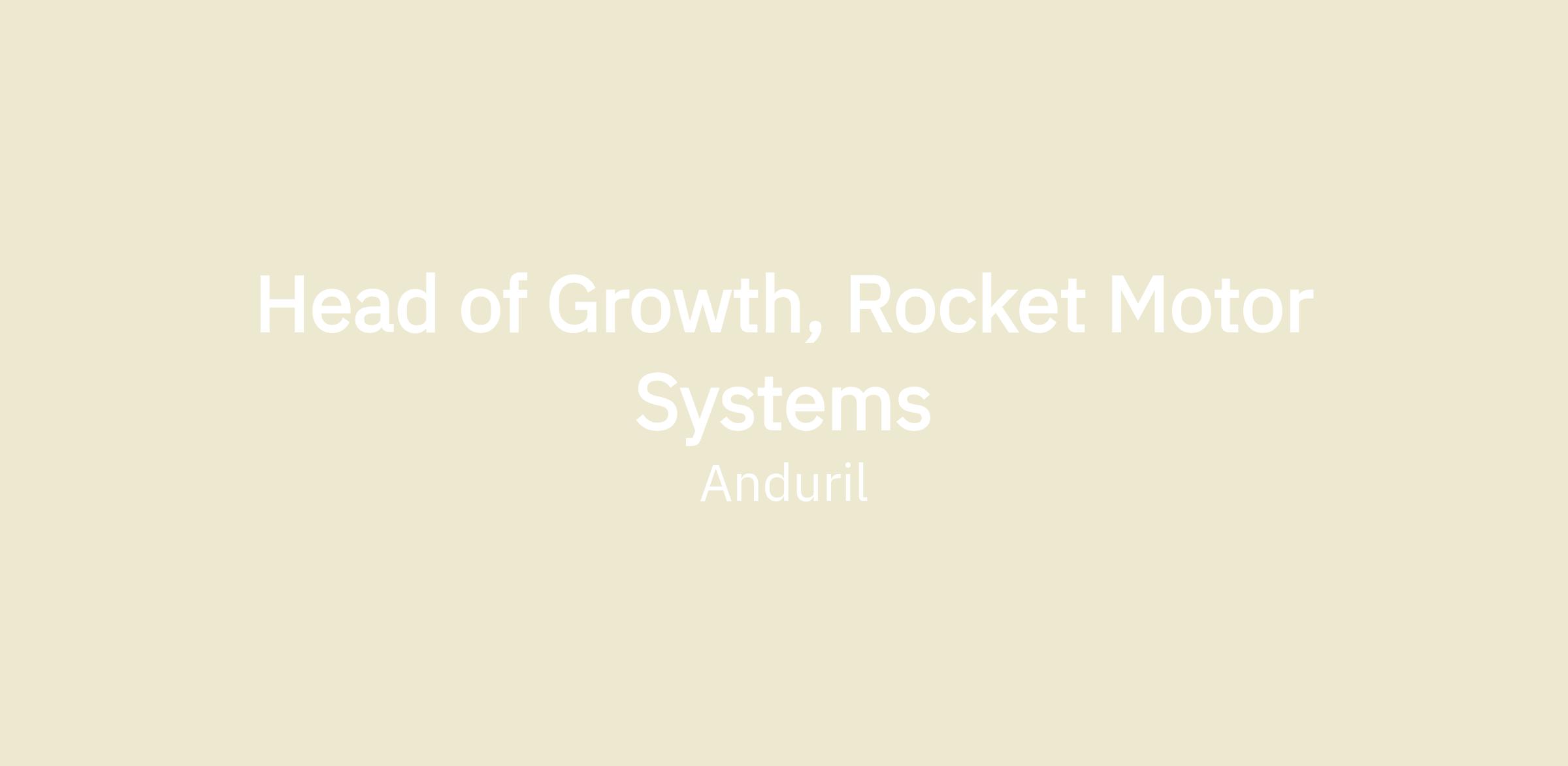 As the Head of Growth for Rocket Motor Systems (RMS), you will report to the RMS General Manager and work directly with the Tactical Reconnaissance & Strike Division Senior Vice President to build Anduril’s rocket motor business business and establish RMS as the primary or secondary supplier of motors on multiple weapons/missile Programs of Record. Your role is cross-cutting. You’ll work across programs, engineering, growth, manufacturing, finance, external partners, and customers to develop and execute BL growth strategy for RMS. You will be responsible for developing, mentoring, and building the RMS growth team and in collaboration with Division and BL leadership, and Strategic Growth. Our ideal candidate will work out of the Washington DC or Huntsville, AL offices.