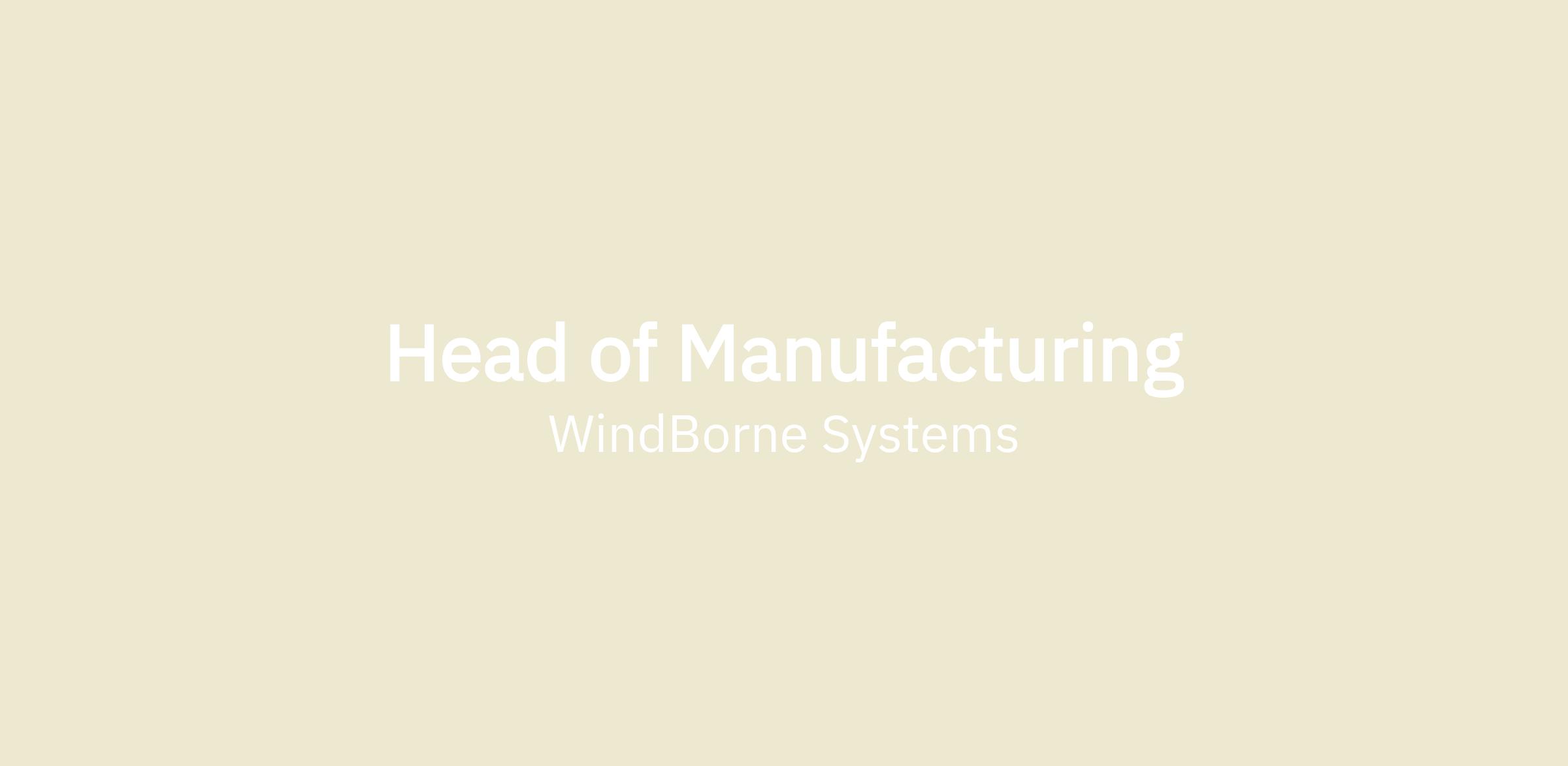 WindBorne is looking for a Head of Manufacturing to own and scale our production systems. We double manufacturing output every six months, and we need someone who can build the organization, processes, and infrastructure to sustain that pace as we scale toward thousands of balloons aloft simultaneously.