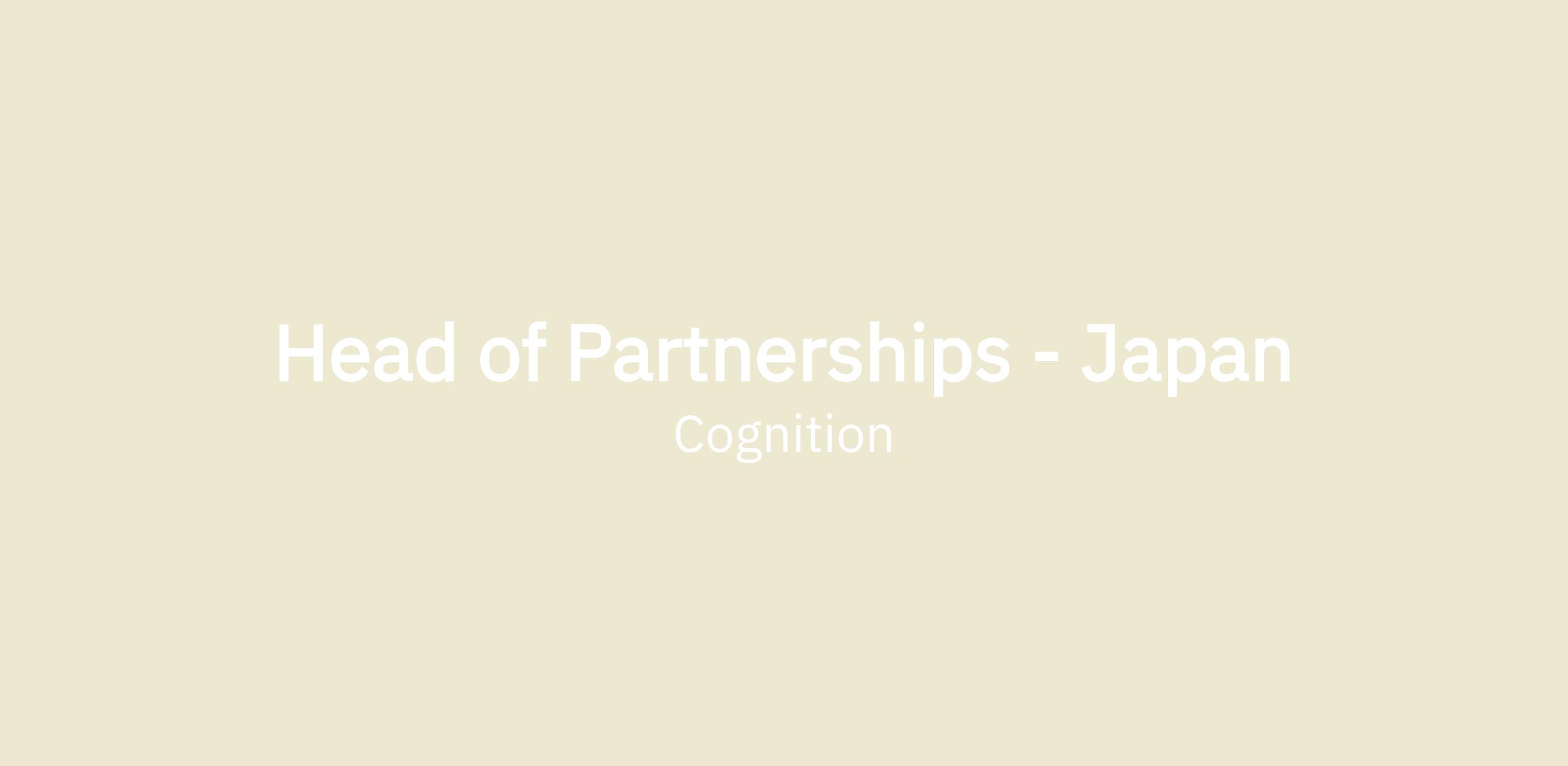 As Head of Partnerships, Japan, reporting into the GM and President, you will be responsible for building and scaling Cognition’s strategic ecosystem across the Japanese market. This includes identifying, structuring, and activating partnerships with leading enterprises, system integrators, cloud providers, and government aligned organisations to accelerate adoption of Devin.