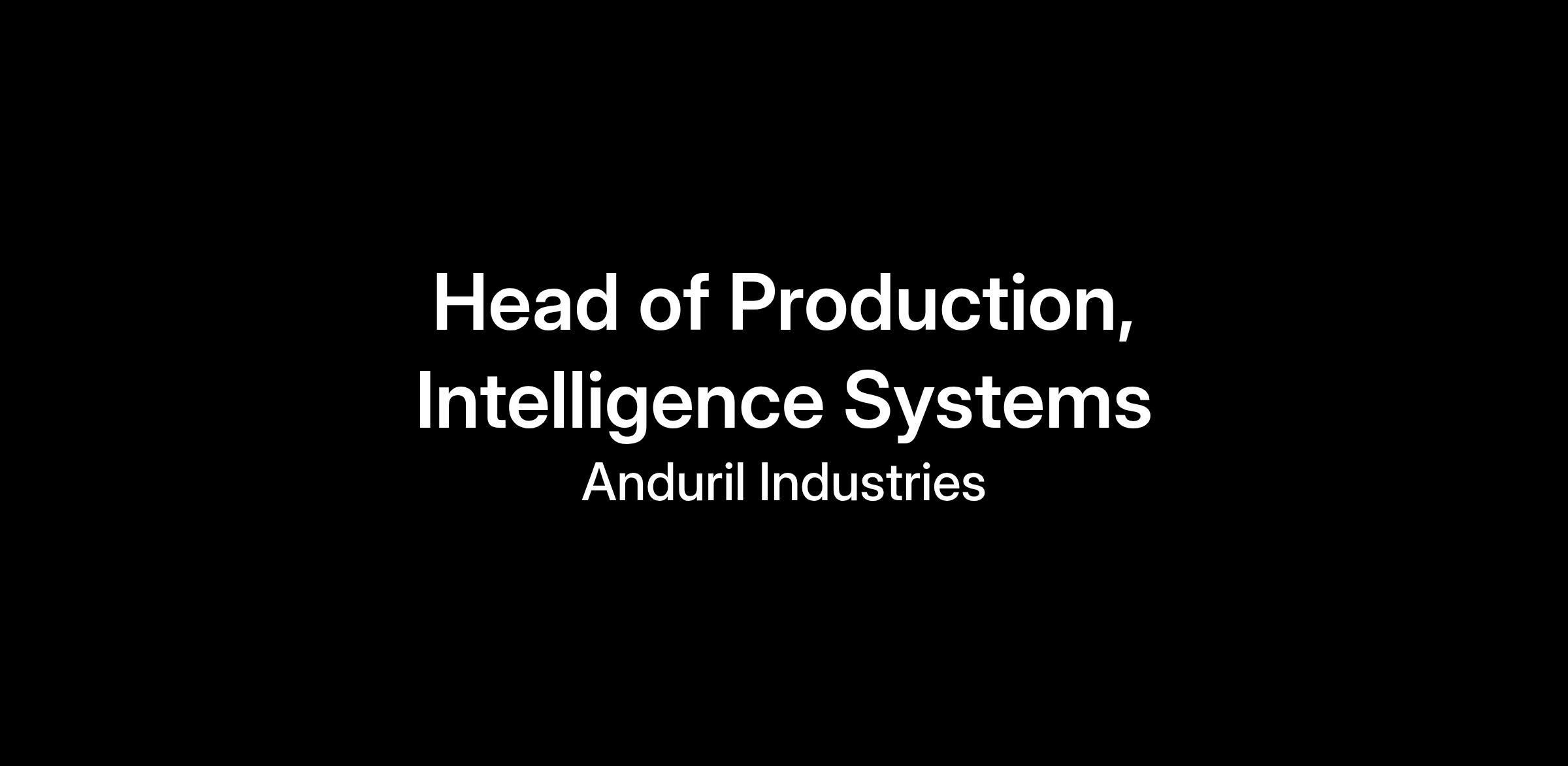 We are seeking a senior director to coordinate all of our production operations across Anduril Intelligence Systems (AIS). The Head of Production for AIS owns short to mid-term (1-3 years) strategic development and execution, operational direction, career pathing, and vision for a product or suite of Anduril products. Your job will be to provide consistent, flawless execution for a variety of product and programs.
