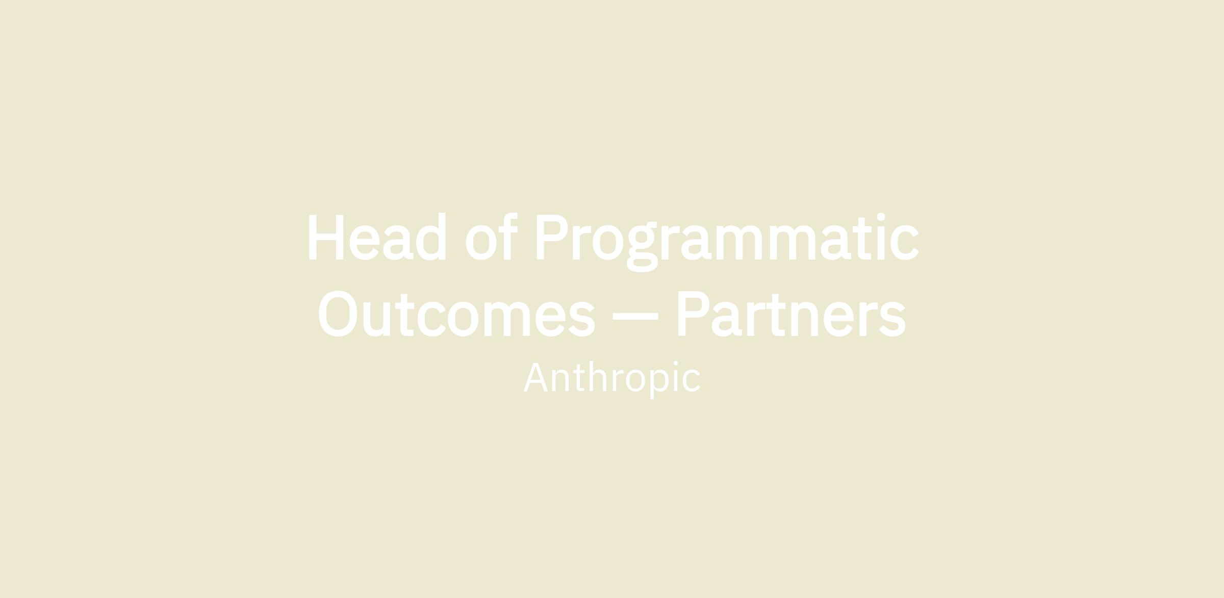 A partner ecosystem is an important mechanism to ensure we train and enable customers to use and love Claude. The Head of Programmatic Outcomes (Partners) is responsible for shaping it — not as a standalone function, but as a focused sub-goal of Anthropic’s broader Partnerships strategy that no single existing team is positioned to own end-to-end. Anthropic already has Alliances, Sales, and a Partnerships org; this leader holds the connective tissue that turns those relationships into a reliable activation and enablement channel.
