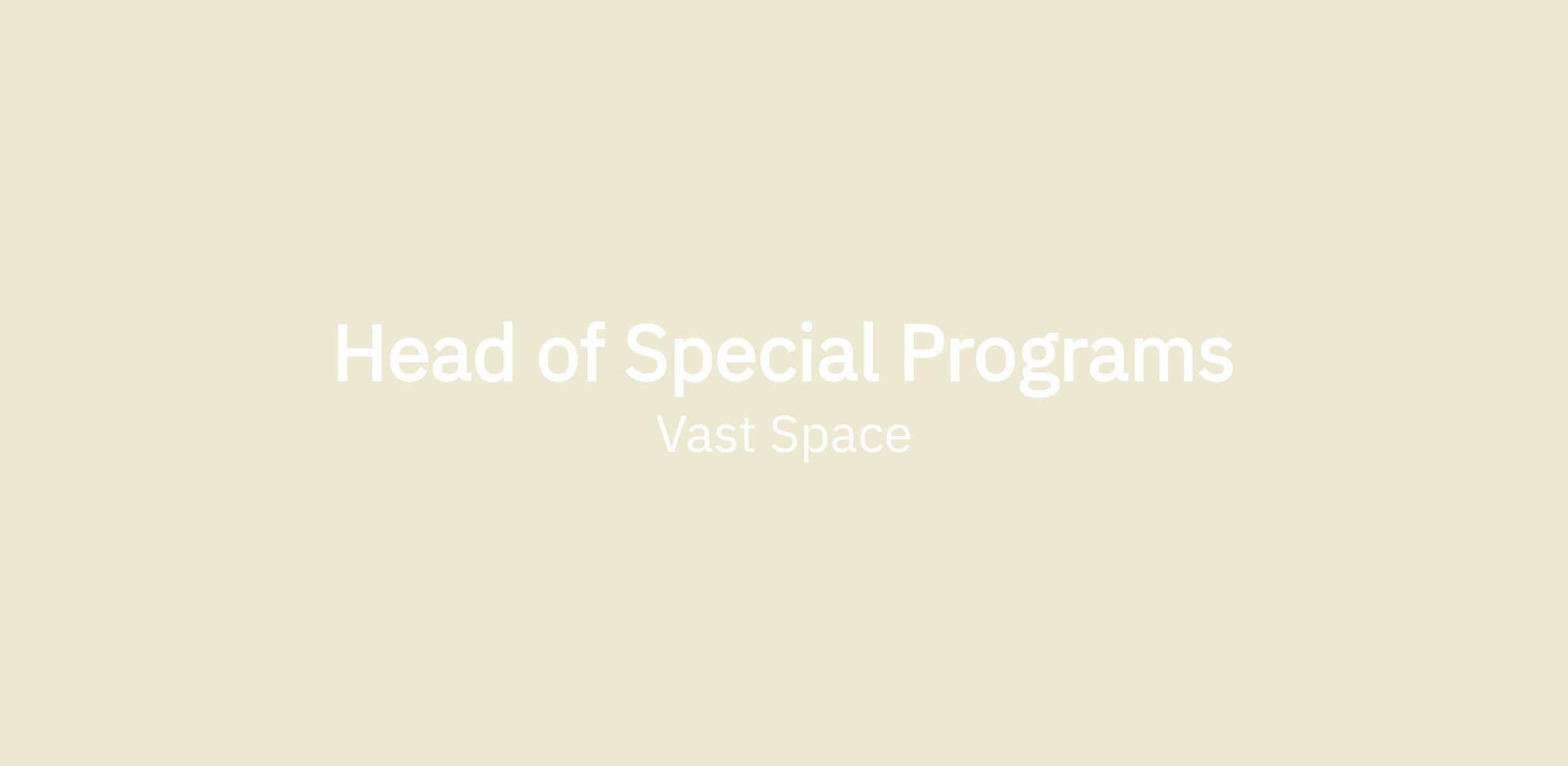 Vast is looking for a Head of Special Programs, reporting to the Chief Policy Officer, to lead all national security focused business development for Haven-1 and future Vast systems. This role will lead customer engagement, opportunity development, capture strategy, and partnership efforts that advance Vast’s initiatives to operate the world’s leading in-space infrastructure in support of national security objectives.