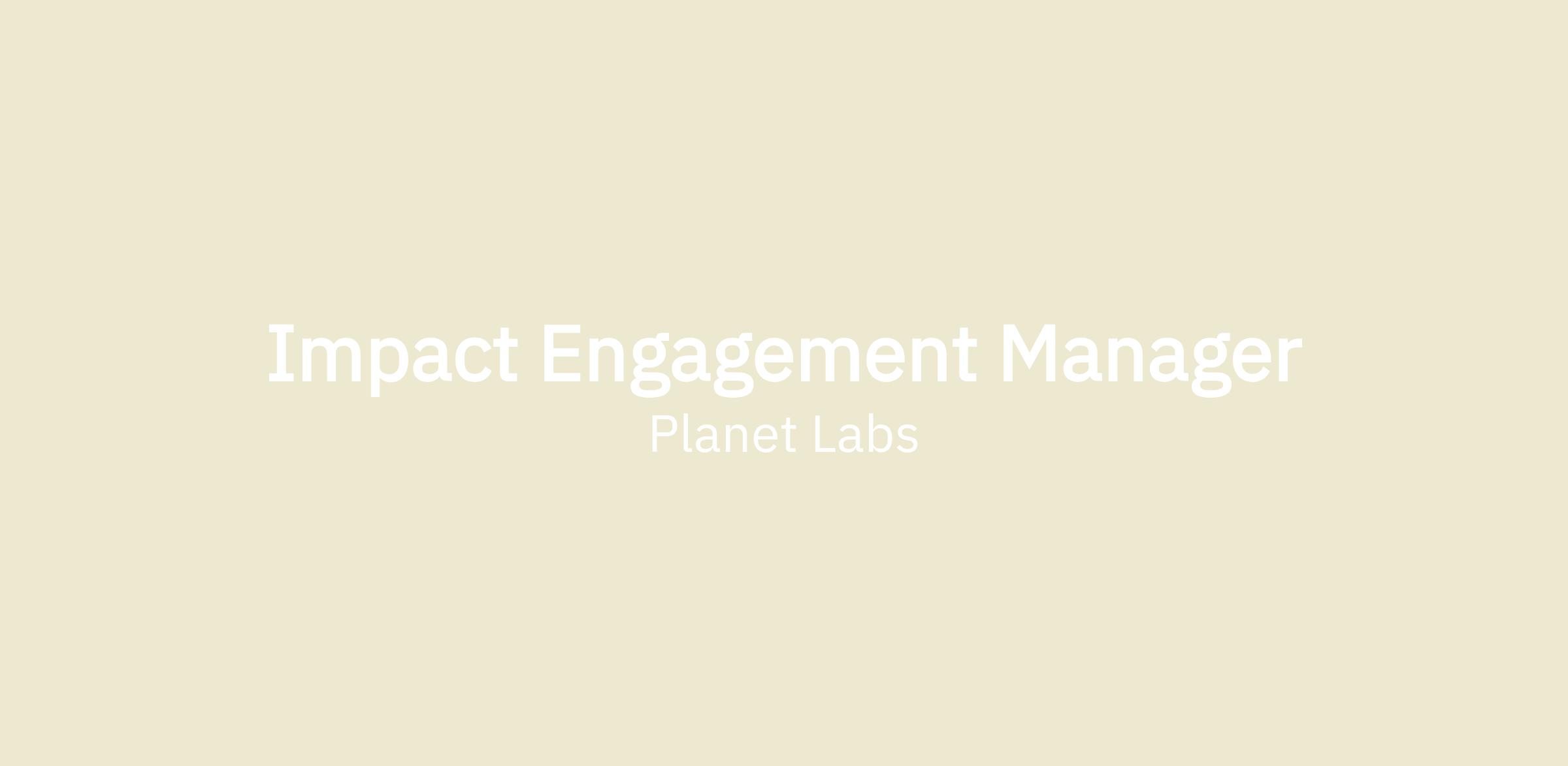 The Sustainability and Impact Team at Planet is seeking a new Impact Engagement Manager. This role will have frontline responsibilities to work with Planet’s Impact, Commercial, and other teams, as well as external partners in areas like food security, disaster response, conservation, climate, and humanitarian action, to help us fulfill our mission to Use Space to Help Life on Earth.