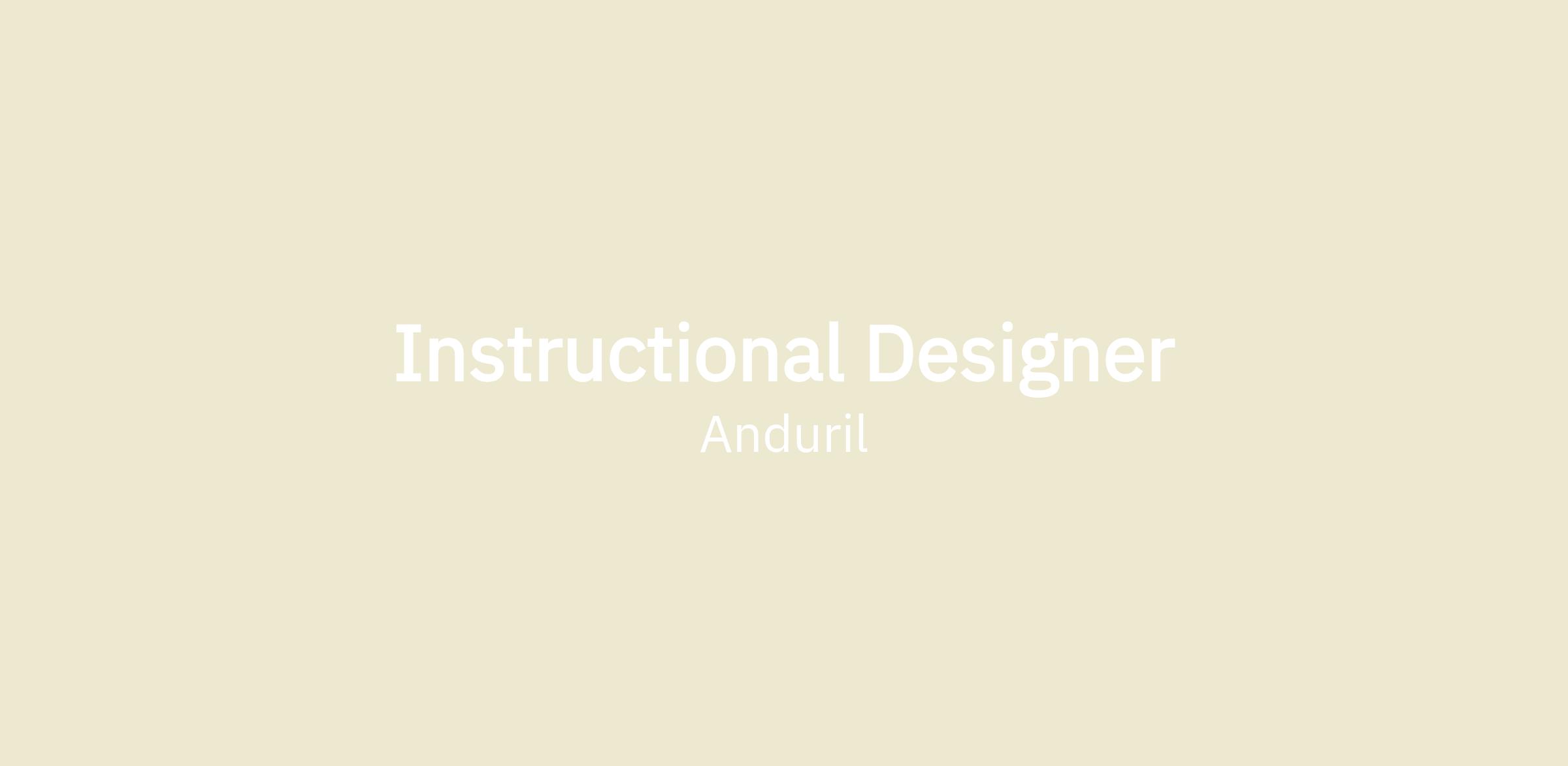 Anduril Industries is seeking an experienced Instructional Designer to create engaging, effective digital training content that supports the deployment, maintenance, and operation of Anduril’s advanced technology products to both internal and external audiences. This role requires strong technical skill, creative vision, and the ability to work collaboratively with Curriculum Developers, subject matter experts (SMEs) and Training and Adoption Managers.
