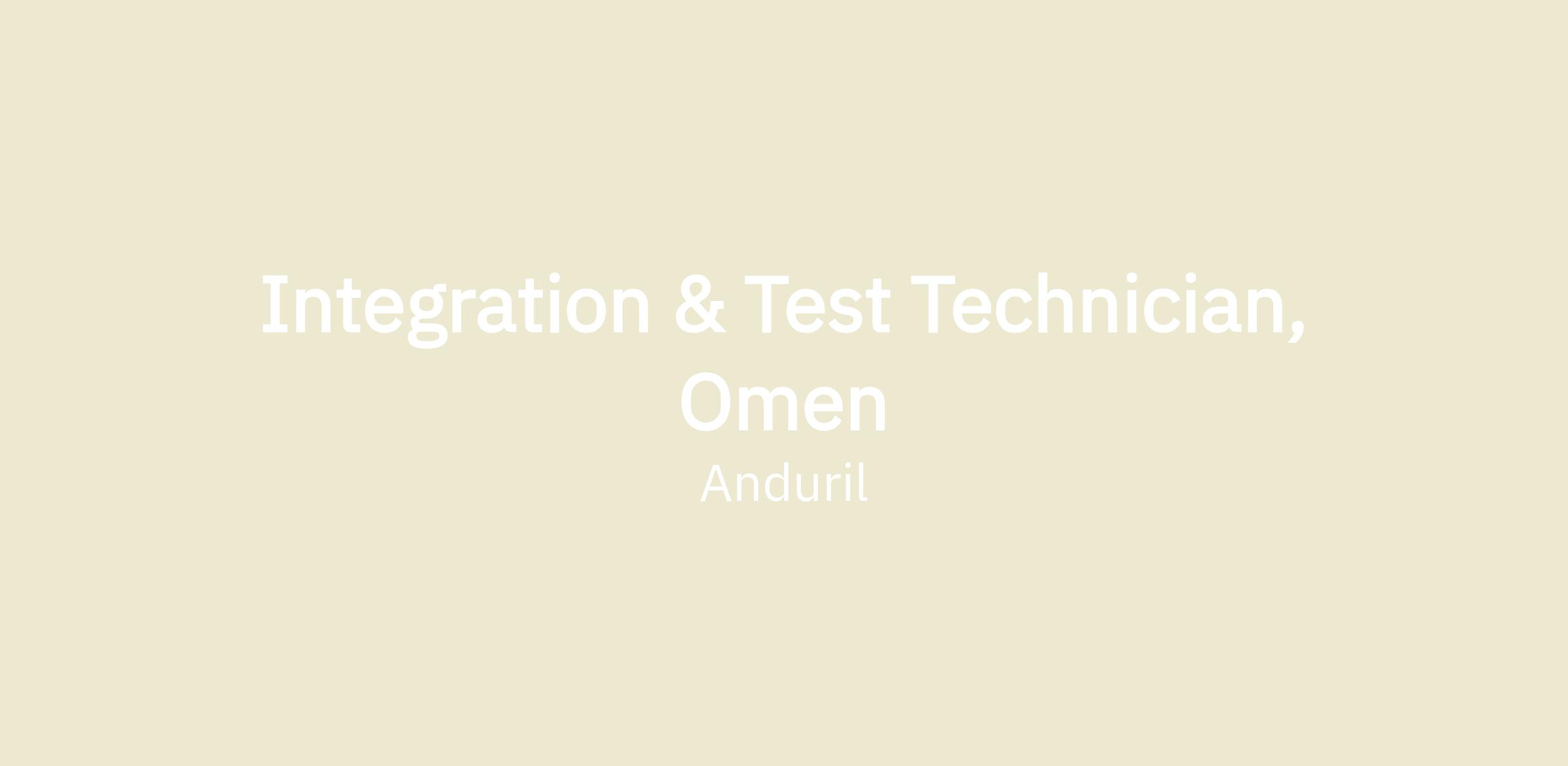 Anduril is seeking an Integration and Test Technician to join the Omen team at our Costa Mesa HQ. Omen is Anduril’s hover-to-cruise autonomous air vehicle (AAV) that packs the endurance, payload, and mission flexibility of much larger airplanes into a novel runway-independent Group 3 platform. Omen can operate from ship decks, beaches, or remote island clearings, providing true runway independence and freedom of maneuver across defense and civilian domains. Omen is the first tail-sitter aircraft with a mass-production contract, with an order of 50 systems representing a decisive investment that anchors production and accelerates the development of future systems.