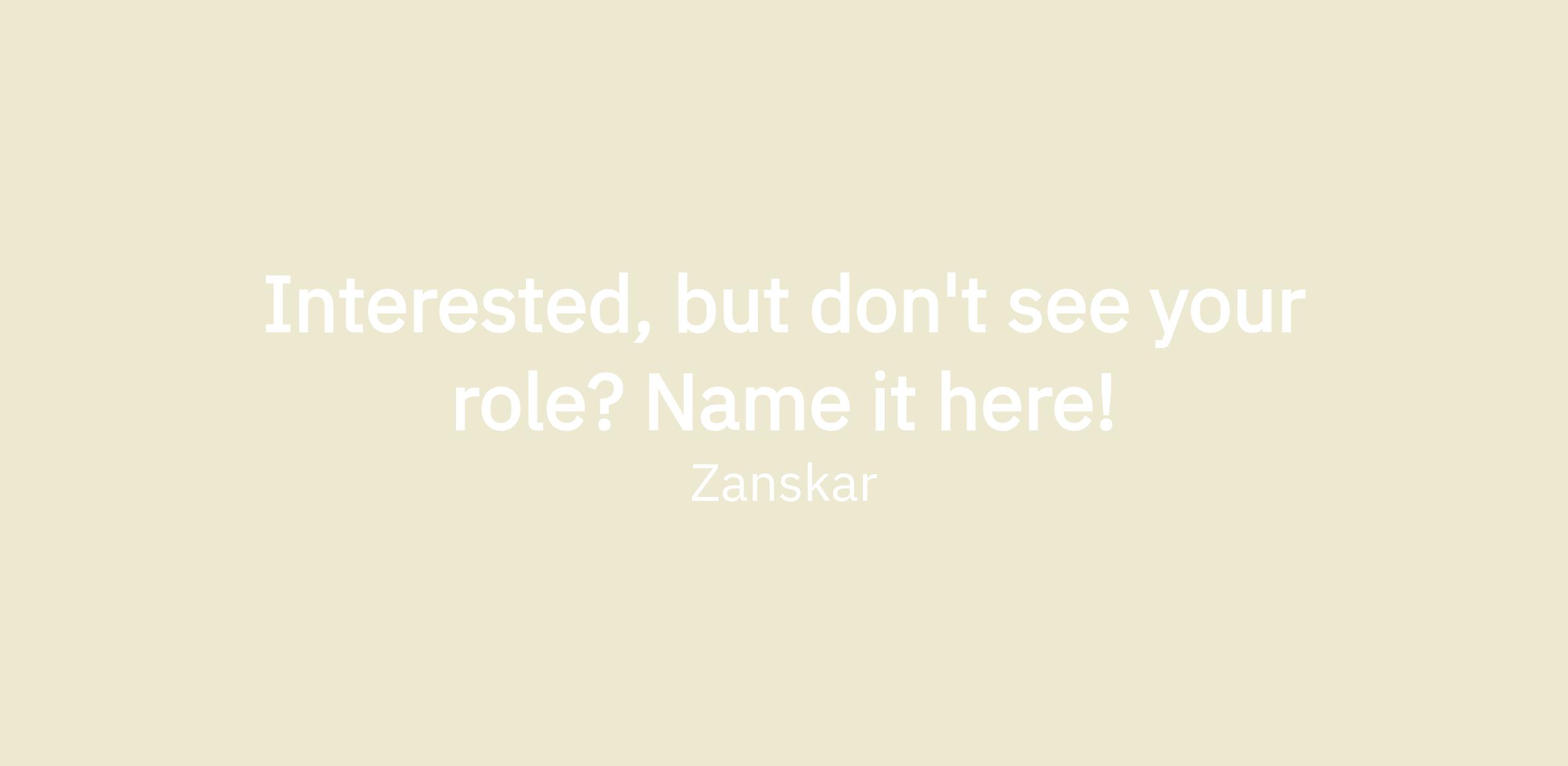 Are you really excited about Zanskar, but don't see a job that fits you? Please apply anyway!